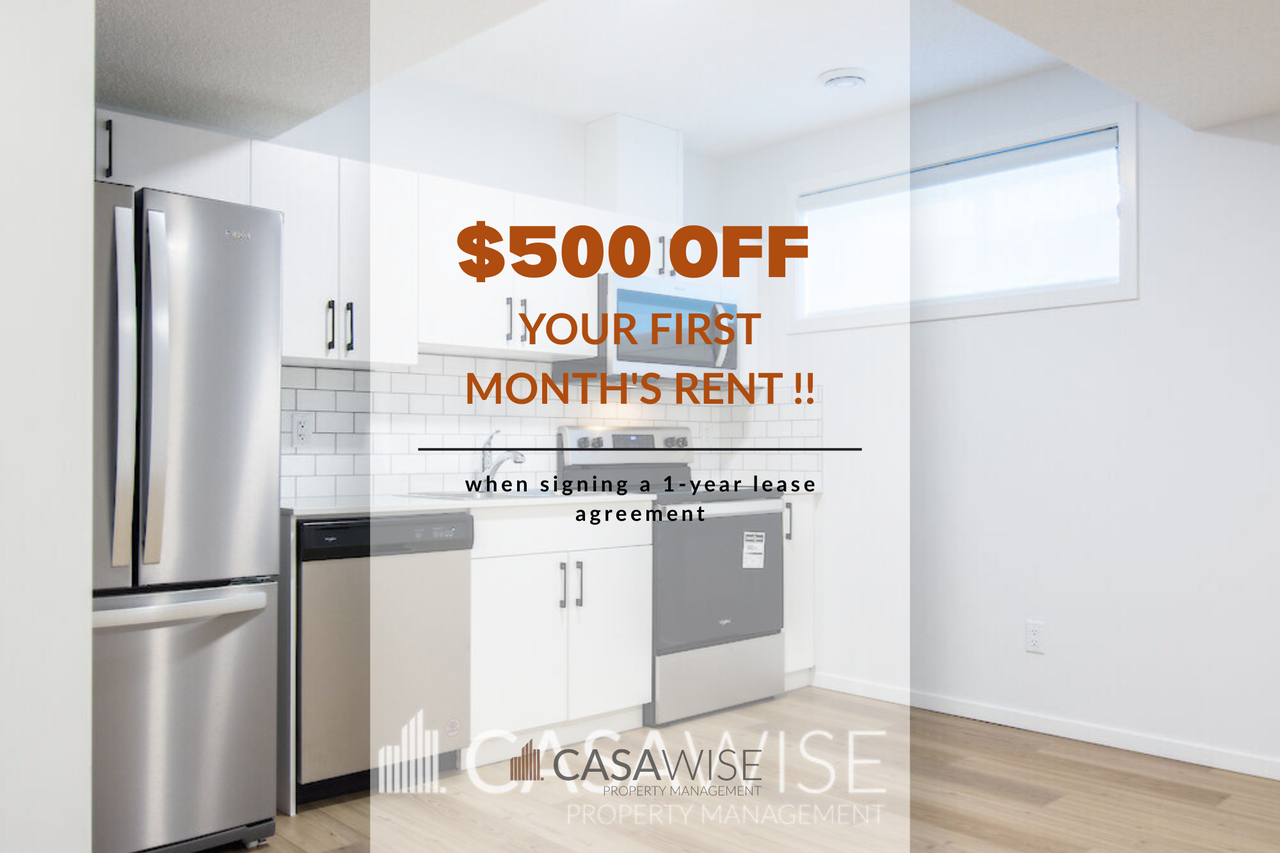 BEAUTIFUL 1-Bed/1-Bath Basement Suite in Creekwood Chappelle! Enjoy $500 off your first month's rent when signing a 1-year lease agreement! This basement suite is the perfect blend of modern living, affordability and comfort. This is the home you are looking for! ? Generously sized bedroom and living area. ? Kitchen with quartz countertops, stainless steel appliances, and tile backsplash. ? Natural light in the main area from a kitchen window. ? In-suite laundry with full-size front load washer and dryer. ? 4-piece bathroom for added comfort. ? Street parking for added convenience. Snow removal is the tenant's responsibility. Prime southwest location with easy access to QEII via 41st Ave. Chappelle Gardens, Canada's fastest-growing community in 2023, offers nearby dining and grocery. Fixed utility fee of $250/month (includes heat, water, and power). Additional fees may apply depending on the number of occupants. One CAT is negotiable with a fee of $50/month. Pet approval is at the time of the application and not guaranteed thereafter. No Smoking. Professionally managed by Casawise Property Management. Only applications received through our site will be processed: https wkf ms 3ytpexk If interested, please provide us with your name, phone number, available times for viewings and a little background about you (when do you need the unit for, how many people would be living in the unit, etc.). Thank you!