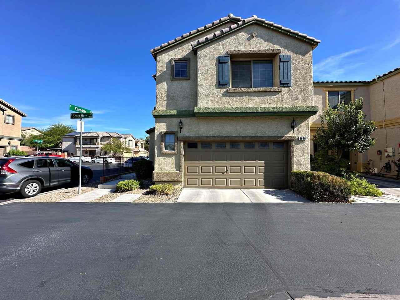 Welcome to 9620 Sharp Horn Ct—set inside a gated Northwest community near Centennial with quick access to parks, dining, shopping, and the 215. This corner-lot home offers 3 bedrooms plus a loft and 2.5 baths. The main level features separate living and family rooms with a defined dining area. The kitchen boasts newer stainless steel appliances and a breakfast-bar island. Upstairs, the larger primary suite includes retreat/flex space and an en-suite bath with dual sinks. All bedrooms are on the same level with a separate upstairs laundry room. Enjoy a private backyard and a 2-car garage. Community amenities include a pool and park area— in a highly desirable Northwest location! Rent includes Resident Benefits Package with air-filter delivery and renters insurance, plus rewards, credit reporting, ID protection, and move-in concierge service.
