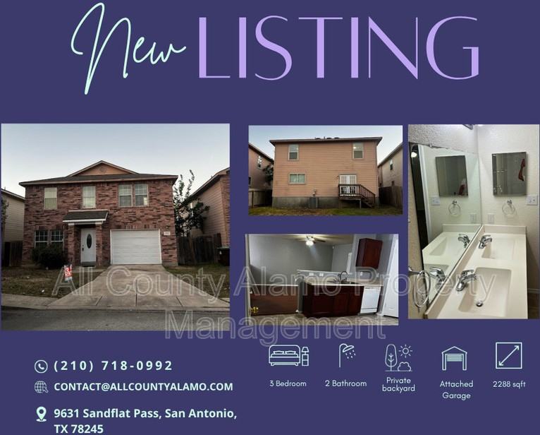 Now Available: Beautiful 2-Story Home at 9631 Sandflat Pass Welcome to this beautifully maintained 2-story home offering 2,288 sq. ft. of comfortable living space, designed for both relaxation and everyday convenience. This home features 3 spacious bedrooms, 2.5 bathrooms, and a 1-car garage, along with a bright and open floor plan that makes the space feel even larger the moment you walk in. Enjoy not just one, but two inviting living areas plus a versatile loft, perfect for a second lounge, office, or play area. The heart of the home is the large kitchen, complete with generous counter space, a walk-in pantry, and a convenient breakfast bar—ideal for cooking, gathering, and entertaining. The primary master retreat is truly special, featuring high ceilings, a cozy sitting area, and oversized windows that fill the room with natural light, creating a peaceful and relaxing atmosphere. Step outside and enjoy the peaceful setting this home offers, providing a quiet and relaxing outdoor space perfect for unwinding or spending time with family. Conveniently located just minutes from schools, shopping centers, dining options, and grocery stores, this home offers the perfect balance of comfort and accessibility. If you’re looking for space, style, and a great location—this home is a must-see. Don’t miss your chance to make 9631 Sandflat Pass your next home 😊