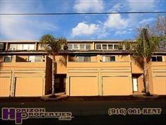 At the intersection of Q and 10th Streets in Downtown Sacramento, this unique three-story townhome offers two bedrooms, one and a half bathrooms, tile storm door entry, fresh paint, beige Berber carpeting, cathedral ceilings, recessed halogen lighting, six-panel doors, dual-pane windows with silhouettes and vertical blinds throughout 1013 square feet of living space. The kitchen has tile flooring, decorative tile backsplash, lazy Susan, three pullouts, counter lighting, glass and wood cabinet doors, pot shelves, and is equipped with an electric range with grill and conventional Jenn-Aire oven, apartment-sized dishwasher, sink with convertible faucet and garbage disposal. The living room has a ceiling fan and sliding glass door to the rear patio. The dining room has tile flooring, soffited ceiling and overhead lighting.The master suite is remotely located and has a ceiling fan with overhead lighting, mirrored three-door closet and French windows. The master bathroom has tile