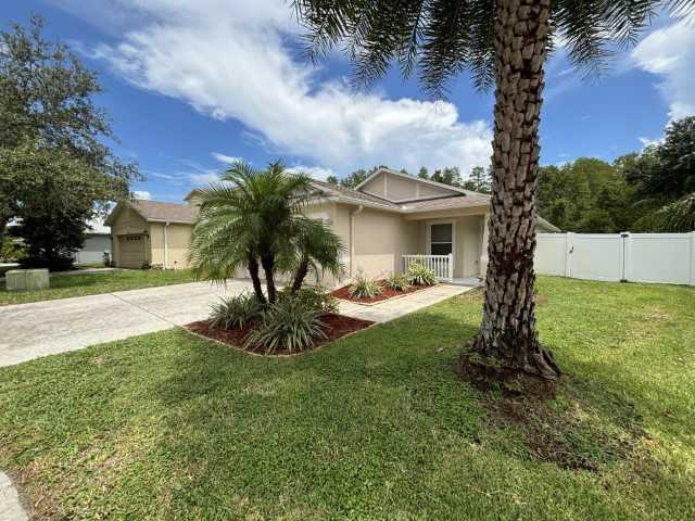 Super cute 3 bedroom, 2 bath home in Asbel Creek, lawn care included! Over 1400 square feet of living space in this home and vaulted ceilings throughout. Granite counters, custom backsplash and stainless appliances in the kitchen. The house has tile and laminate flooring throughout. No carpet. Good size two car garage and fenced yard. The home is situated on a Cul-de-sac with no rear neighbors and a beautiful conservation area. Nice sized screened patio as well. Washer/dryer hook ups. Cats welcome, but no dogs please. $75 App fee/adult, security deposit equal to one month's rent, $75 tenant annual processing fee per household after acceptance,$30 non-refundable pet screening fee, renters insurance required.