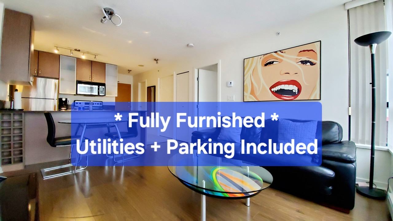 Available July 2026. Furnished Unit . Utilities & Parking Included Vancouver Corporate Housing / Relocation Serenity in Yaletown - A quiet home base in the central, well connected Downtown Vancouver. Turn-key Fully Furnished 1 bedroom + Den with generous size balcony and open outlook onto BC Place. Enjoy all Vancouver has to offer, with Yaletown and Downtown premium districts at your door step - Just bring your suitcase! Steps to False Creek Sea Wall, Yaletown District, and just 2 blocks to Robson St and steps to Canada Line / Public Transit. Included in the monthly rent: - Utilities: Hydro (Electricity, heat) / Fiber Optic highspeed Internet - 1 secured underground parking and 1 storage locker - In-suite laundry - Building amenities: 24-hour security, exercise centre, bike room - Modern furnishing: Leather Sofa, 50" 4K Smart TV, Stainless Steel appliances, and Queen size bed with quality mattress - Kitchen utensils, dining ware, linen, bedding included Unit comes with German engineered flooring, built-in wine rack, stone composite counters, Italian Marble vanity countertop. References required. Non-smoking. No pets please. Lease Term: Furnished Rental. 3 month minimum Payment: • $2,950 per month for 6+ month term / Under 6 month: $3,500 per month • Move-In Fee (per Strata requirement) • Security deposit: 50% of Monthly rent