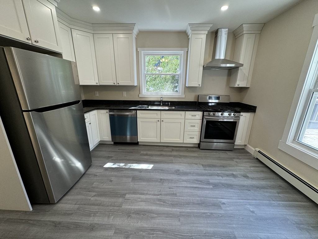 Newly updated kitchen in Cambridge detached single family rental available now! Brand new kitchen includes floors, stone countertop & stainless steel appliances: refrigerator, dishwasher, gas range/oven and exhaust hood. A double door pantry is nearby the kitchen's dining area as is a door to the driveway. Both the kitchen and the living room provide two exposures so ample sunlight is enjoyed throughout. Upstairs are both bedrooms and the office plus the full bathroom. The basement offers additional storage, utilities, a half bathroom and the laundry machines, which are left as a gift to the next tenant. No undergraduates or smokers. First month rent, security deposit and broker fee due at lease signing. Video tour available. Star Market and Sofra Bakery .2 miles down the street, with access to the Watertown-Cambridge Greenway even closer for bike riding, jogging, commuting & Fresh Pond Reservation trails. Harvard Sq in under 20 min by public transit. Longwood in under 20 min by car.