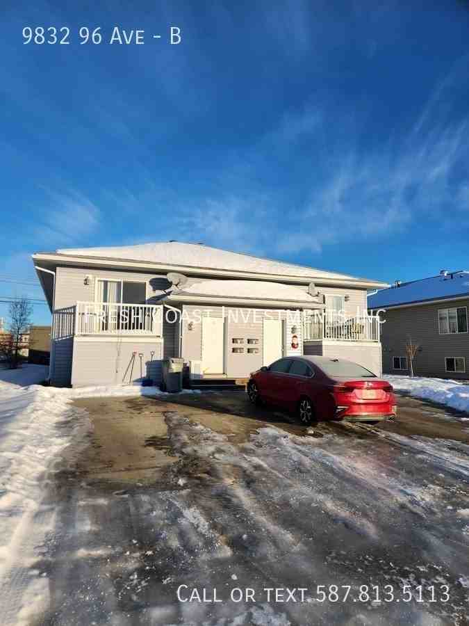 Fully Furnished 2 Bedroom Condo – All Inclusive! 9832 96 Ave Unit B Ave, Grande Prairie, Alberta Looking for a comfortable, move-in ready rental? This beautifully fully furnished 2-bedroom condo is the perfect place to call home — ideal for professionals, couples, or anyone needing a hassle-free stay in Grande Prairie. 2 Spacious Bedrooms 1.5 Bathrooms Fully Furnished with stylish, comfortable furniture Fully Stocked Kitchenette with dishes, cookware & appliances High-Speed Internet & All Utilities Included Powered Parking Stall In-Suite Laundry Conveniently located on the east side near shopping, restaurants, and major routes, this quiet, well-maintained building offers both comfort and accessibility. Short & Long-Term Stays Available Professionally Managed by Fresh Coast Rentals Clean, Safe & Turnkey Living Rent: All Utilities Included Available: Sept 2nd, 2025 Call or Text: 587-315-0273 Visit: www freshcoastrentals ca Email: ****