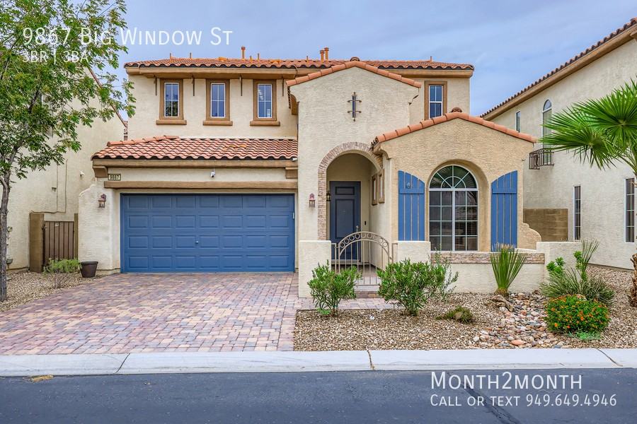 Welcome to this beautiful 3-bedroom, 3-bathroom home offering a spacious and modern living experience. Featuring a 2-car attached garage with a finished interior and automatic garage door opener, this home is designed for both comfort and convenience. Inside, you'll find a bright living room with vaulted ceilings, a stylish kitchen with granite countertops, stainless steel appliances, and a breakfast nook, and a separate dining area. The primary suite boasts a walk-in closet, double sinks, and a makeup table, while an additional bedroom is conveniently located on the main level. With carpet and laminate flooring throughout, energy-efficient double-pane windows, ceiling fans in multiple rooms, and a dedicated laundry room with a gas dryer hookup, this home is both functional and inviting. Guest Access • Gated Community • An Open-concept Kitchen and Breakfast Area with Beautiful Countertops • 3 Bedrooms, one of which is on the First Floor • Dedicated Open-Concept Office Space, Perfect for Your Work-from-Home Needs • 3 Full Bathrooms for Your Convenience • Hardwood Flooring in the common area and carpet for bedrooms • Fenced Backyard With Ample Outdoor Seating • 2 Car Attached Garage & Additional Street Parking Available Location This home is in a prime location with excellent amenities and convenience. Shopping options include Albertsons supermarket just 2 minutes away (0.6 miles), Mountain’s Edge Marketplace within a 5-minute drive (2.5 miles), and the upscale Town Square Las Vegas shopping and entertainment center only 20 minutes away (10 miles). Healthcare facilities are easily accessible, with Southern Hills Hospital & Medical Center just 15 minutes away (7 miles) and Spring Valley Hospital Medical Center 18 minutes away (9 miles). The home is within a top-rated school district, including William V. Wright Elementary School (5 minutes, 1.8 miles), Gunderson Middle School (8 minutes, 3.5 miles), and Desert Oasis High School (7 minutes, 3.2 miles). Transportation is convenient, with quick access to I-15 within 15 minutes (8 miles) and McCarran International Airport just 20 minutes away (12 miles). Recreational opportunities abound, from Exploration Peak Park (6 minutes, 2.8 miles) to the breathtaking Red Rock Canyon National Conservation Area (30 minutes, 20 miles). Plus, the world-famous Las Vegas Strip is just 25 minutes away (14 miles), offering top-tier entertainment, dining, and shopping. This home provides the perfect blend of a peaceful residential environment and urban convenience, making it an ideal choice for families.