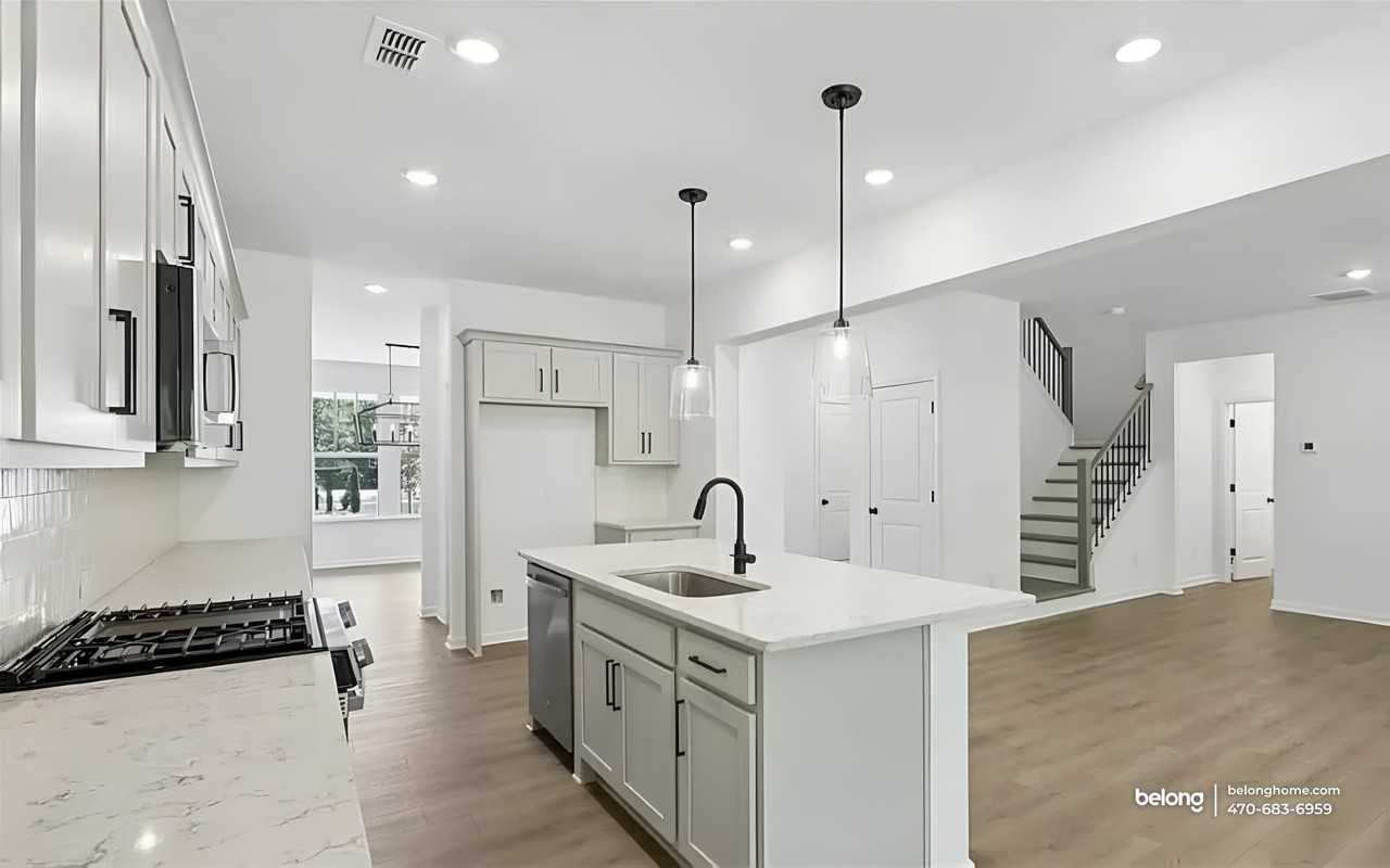 This brand-new home offers generous scale and modern comfort across 3,200 square feet of thoughtfully finished living space. With 5 bedrooms and 4 baths, the layout supports flexibility for work, rest, and gathering, all wrapped in a crisp, newly built setting. Living areas feel open and bright, with wide-plank-style flooring, recessed lighting, and clean architectural lines that keep the space feeling airy and adaptable. A ceiling fan adds comfort, while the open flow allows living and dining zones to connect naturally to the kitchen. The kitchen anchors the main level with ample cabinetry, a large center island, and pendant lighting that defines the space while keeping sightlines open. Bedrooms are well distributed, giving everyone room to settle in, while four full baths feature modern vanities, sleek fixtures, and a fresh, uncluttered look that reflects the home’s new construction. Set in Dawsonville, daily errands and weekend plans are close at hand. Grocery options like Kroger and Publix are nearby, along with shopping at North Georgia Premium Outlets. Outdoor recreation comes easy with Amicalola Falls State Park, local trails, and parks offering scenic escapes. Access to GA 400 supports commuting and connections to Cumming and the greater North Georgia area, while nearby cafes and restaurants add everyday convenience. *Fireplace is for decorative use only and cannot be used without consent from Belong. *Our homes come as-is with all essentials in working order. Want upgrades? Request it through the Belong app, and our trusted pros will take care of the rest!