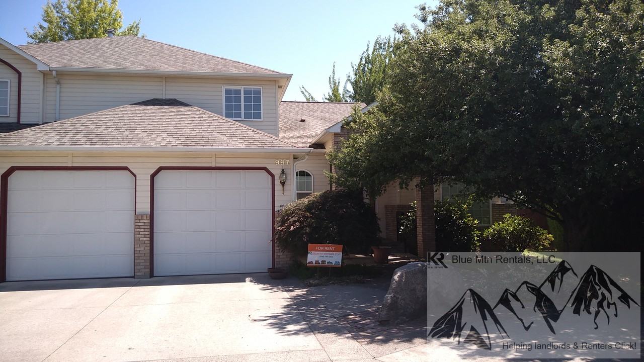 Town home in Garrison Creek Heights 997 SE Admiral Way College Place, WA 3 bd. 2 bath Duplex 3267 Sq. Ft $2250/mo. $2000 Dep. Screening Req. Available now. 1 year Lease Req. No Pets. Smoke Free Property Call 509-240-3325 for information Executive town home is move in ready. Plenty of room for social gatherings, barbecues or entertaining. Offering a large living room area that is warm and inviting with a vaulted ceiling. Formal Dining area is adjacent to Living room & Kitchen. Bonus room with slider door to the deck and fenced back yard would be perfect for an office, work out room or play area for the kids. Prepare gourmet meals in the kitchen equipped with plenty of cupboard storage, glass top electric range, stainless steel fridge, new dishwasher and coffee bar with extra sink. Breakfast nook off the kitchen leads to a small deck with back yard access and has additional built in kitchen storage and cabinets. Family room area off the main entry has a gas fireplace that is cozy and adjacent to kitchen with a spot for stools at a bar area. Large main level master bedroom with full en-suite bath and walk in closet. Full guest bath on main floor with shower and laundry hook ups - close to garage. Upstairs offers 2 generous size bedrooms with walk in closets. Large loft area leads to full bath with tub. A mature shade tree in the fenced back yard helps to keep you cool in the summertime. Equipped with central forced air heat and AC. Sprinkler system and owner paid seasonal yard care leave you to relax in the outdoors. Additional extra storage space in partially finished 792 sq. ft. basement area. Over-sized two car garage, driveway parking and an additional angle parking space are only available parking. Owner bills flat $200 fee for water, sewer & lawn care monthly. Tenant pays gas, electric and all other utilities in addition to rent. Most windows and slider doors are equipped with curtains or blinds. Great location near shopping, highway access, close to local parks and more. $2000 Deposit due at lease signing. Call today for your personal tour.
