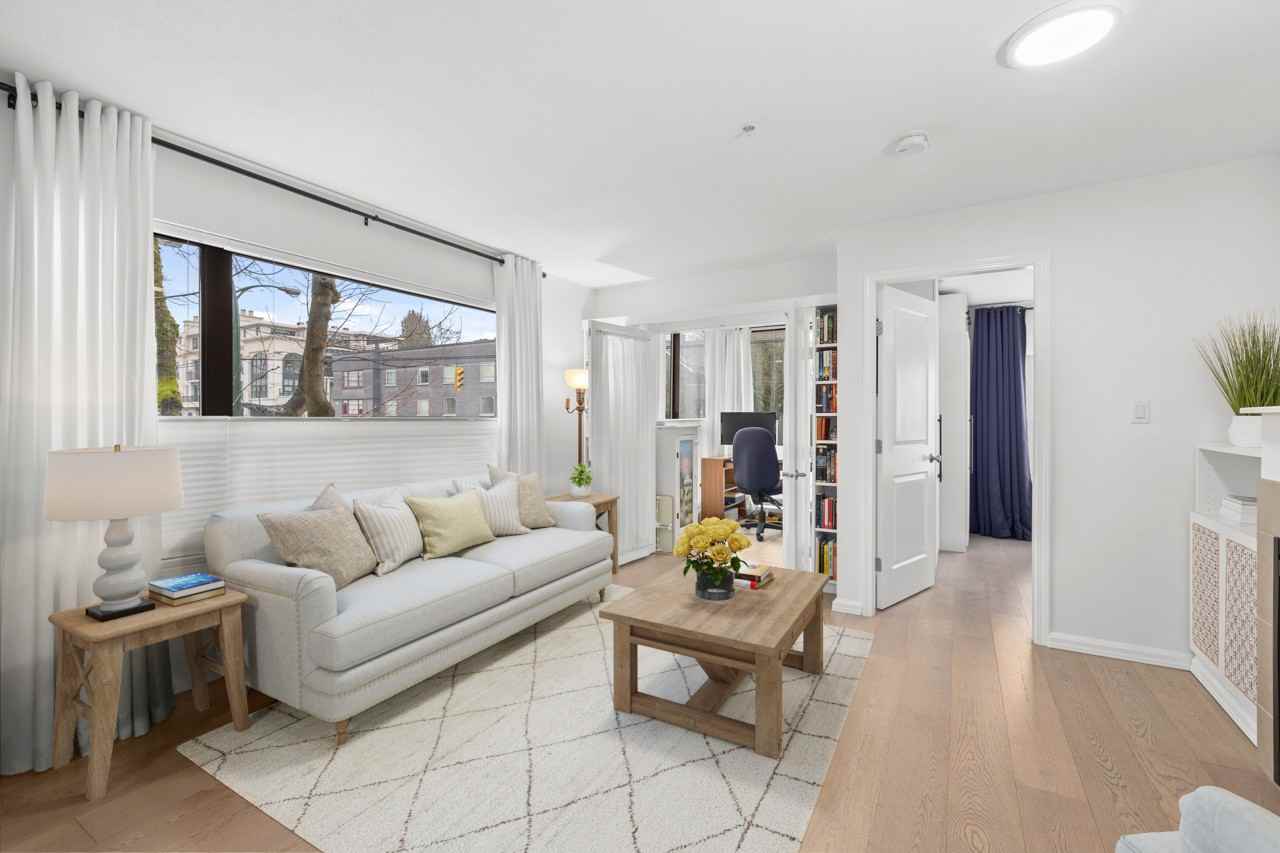 Unfurnished 2 bed + solarium, 2 bath, corner-unit home has a very sought-after open-concept floor plan with no wasted space. The spacious layout accommodates house-sized furniture & has bedrooms separated for maximum privacy. The oversized windows and designer paint colors make the home bright. The large kitchen features newer appliances, granite counters, a breakfast bar, ample counter & storage space (2 pantries). Features: modern engineered oak hardwood flooring & cozy electric fireplace. 1 parking, 1 storage, secure bike storage, 1 pet allowed. Excellent location steps to Douglas Park & community centre, great schools, shops, restaurants & Pallet Coffee Roasters across the street. 10 minute drive/20 minute bike from Kitsilano, 25 minute walk to False Creek.