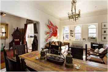 On the top floor of a handsome 19th century townhouse with elevator, this stylishly furnished two bedroom home showcases prewar beauty with modern convenience, in an ideal location just half a block to Central Park. With splendidly high ceilings, the south-facing living room is adorned with ornate base and crown moldings and a decorative fireplace. Three windows permit streaming sunlight throughout the day. The separate dining area leads to a bright, windowed eat-in kitchen with a spectacular stained glass transom over the entryway. The kitchen offers two south-facing windows, excellent counter space, side-by-side washer and dryer neatly concealed behind cabinet doors, and a full-sized dishwasher. The spacious master suite is complimented by a beautifully outfitted walk-in closet and a cheerful white tiled en-suite bathroom with a skylight above. The second bedroom also includes a fully-outfitted closet and excellent light. Down the bedroom hall, the second full bathroom also features a skylight, and there are three additional closets for effortless organization. Incredible prewar details add to the charm of this classic townhouse apartment, such as lofty high ceilings, base and crown moldings throughout, hardwood floors with decorative inlay, and lovely stained glass transoms over each bedroom door. This elegant cooperative offers elevator service, bicycle storage, and a premier location just moments from Central Park! Dogs are not permitted.
