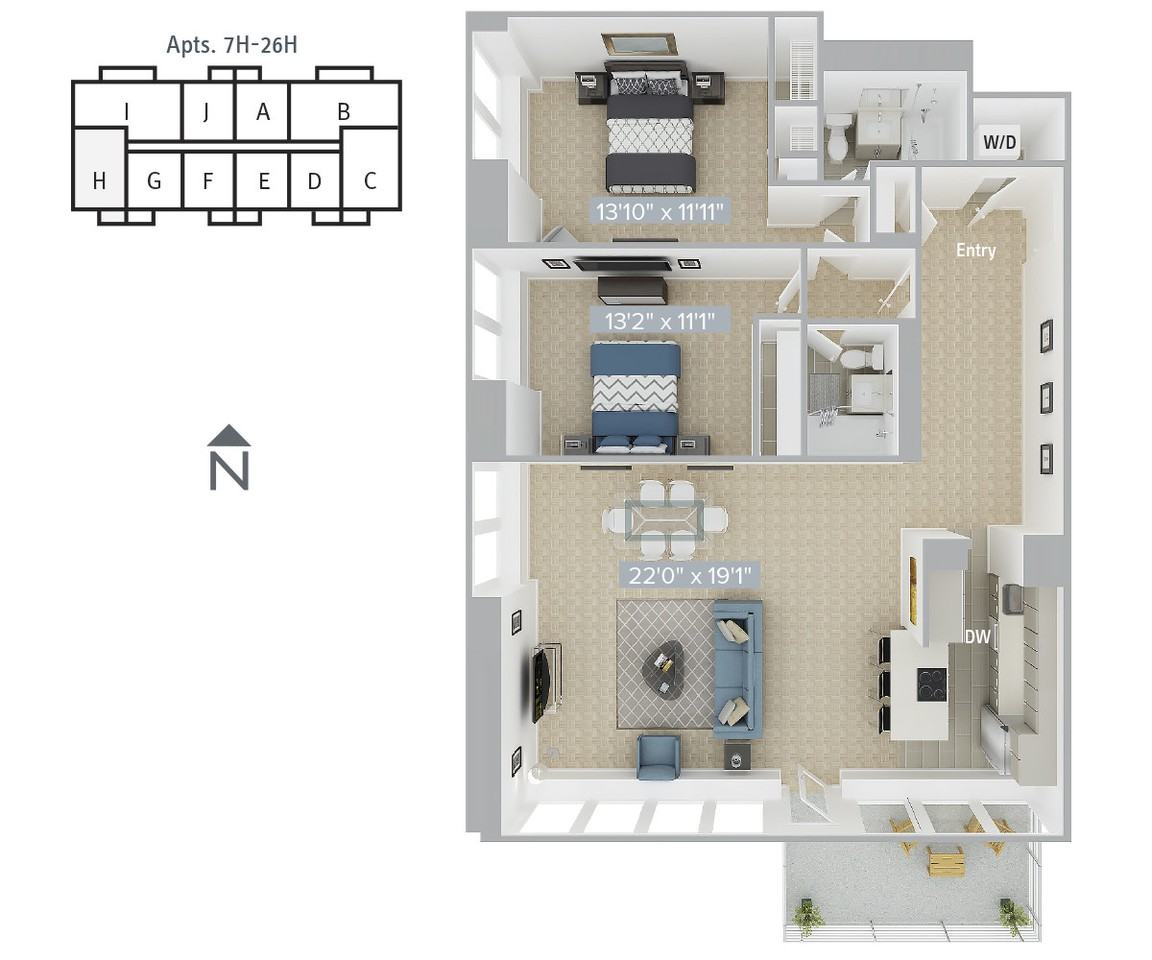 2 Bed 2 bath unit