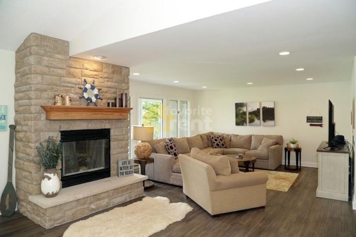 This private home includes 3 Bedrooms plus bunkroom, 3 Full recently remodeled bathrooms, bar area with ice maker - sink - wine cooler - refrigerator, recroom, 2 fireplaces, hardwood floors throughout, all new kitchen with stainless steel appliances: oven, stove, dishwasher, whirlpool, multiple decks, gas and charcoal grill, large dinning table, outdoor furniture. 55 - 75\" TV\'s throughout (Including all bedrooms), cable included, small office with computer and printer. 4-5 cars parking in the driveway at one time. Beautiful views of State Park. The house is now available for a minimum of 3 months lease with utilities included. -- LID 44999921