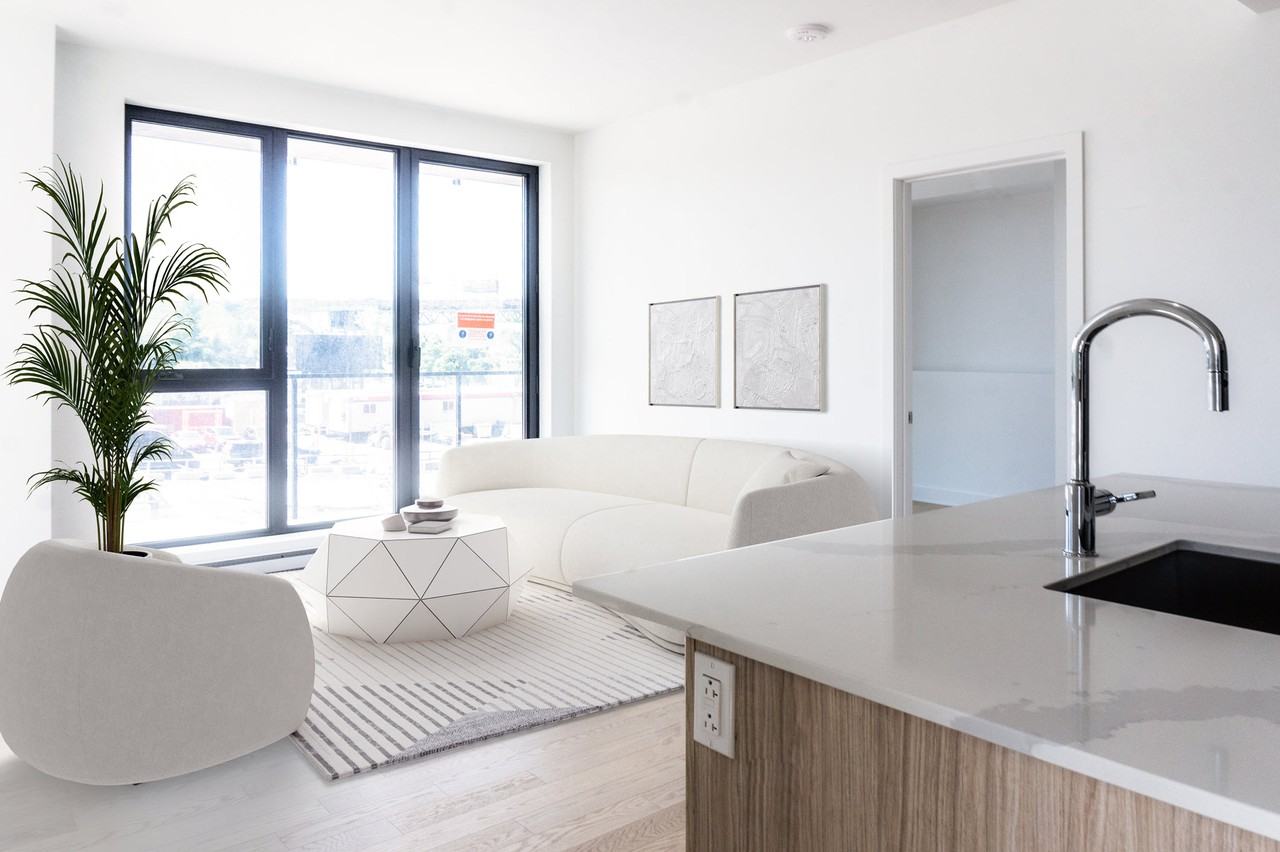 Available from September 2025. A luxurious new apartment in the heart of the future downtown Longueuil, winner of the Habitat Design Award 2022. Just a 1-minute walk to the University of Sherbrooke, a 2-minute walk to the metro, and a 9-minute metro ride to downtown Montreal. Corner unit on the second floor, one bedroom + an office (with window and sliding door). High ceilings with large windows, filled with light. - OFFICE 5'-0" x 7'-11" - BEDROOM 9'-5" x 9'-6" - LIVING + DINING 17'-9" x 10'-2" - KITCHEN 12'-5" x 8'-6" - BATHROOM 9'-5" x 5'-11" - ENTRY 5'-4" x 5'-6" - BALCONY 22'-9" X 5'-4" Large private balcony, storage space in the basement. Indoor parking available ($250/month) and locker available ($25/month). Included: - Heating (except for Baseboard usage), air conditioning, and hot water; - Appliances included (6): refrigerator, stainless steel stove, dishwasher, microwave, washer, and dryer; - Air exchanger; - High-quality soundproofing; - Custom-made professional curtains; - 9-foot ceilings; - Large private balcony (22'-9" X 5'-4"); Common areas and services: - Nordic spa, rooftop terrace, barbecue area, summer kitchen with pool; - Beautiful lobby and common lounge; - Gym. And more: - No pets. Non-smoking. No short-term rentals; - Hydro and wifi not included; - Tenant insurance required; credit check and employment references required. More information could be available by email. Feel free to schedule a visit.
