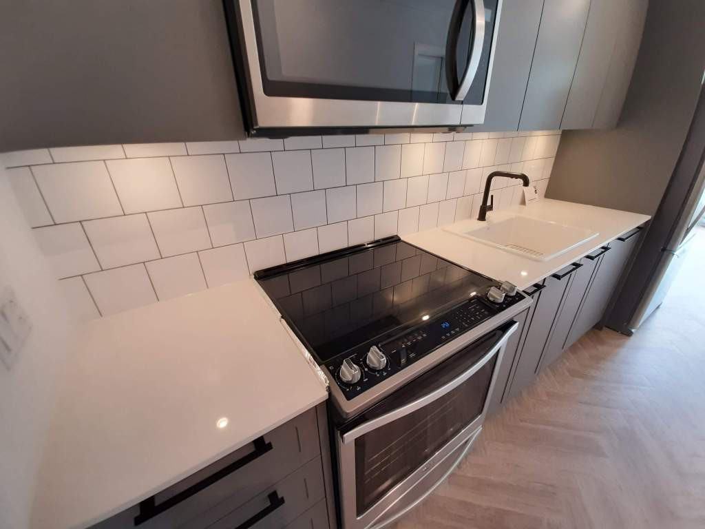 GUILDHOUSE by MOSAIC. This two bedroom, one and a half bath unit located on the ground floor. It features its own private yard, a spectacular kitchen space with ten-foot-high ceilings, beautiful modern grey cabinets, black accents, SS appliances and lots of storage. Elegant white barn doors open into the spa-inspired ensuite with a separate bath & shower along with a contemporary vanity & large backlit mirror. This central location is walking distance to public transportation, shopping, recreation and more. To schedule a showing directly for this and all our listings please visit: https calendly com easyrent 110-10168-149-st-surrey-bc or text us at 604-628-4604 for any queries.