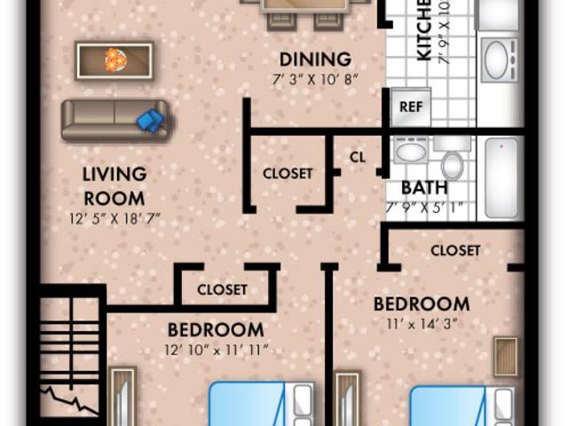 | Two Bedroom 1 Bath | 2 bed | 1 bath | 1,030 sqft |