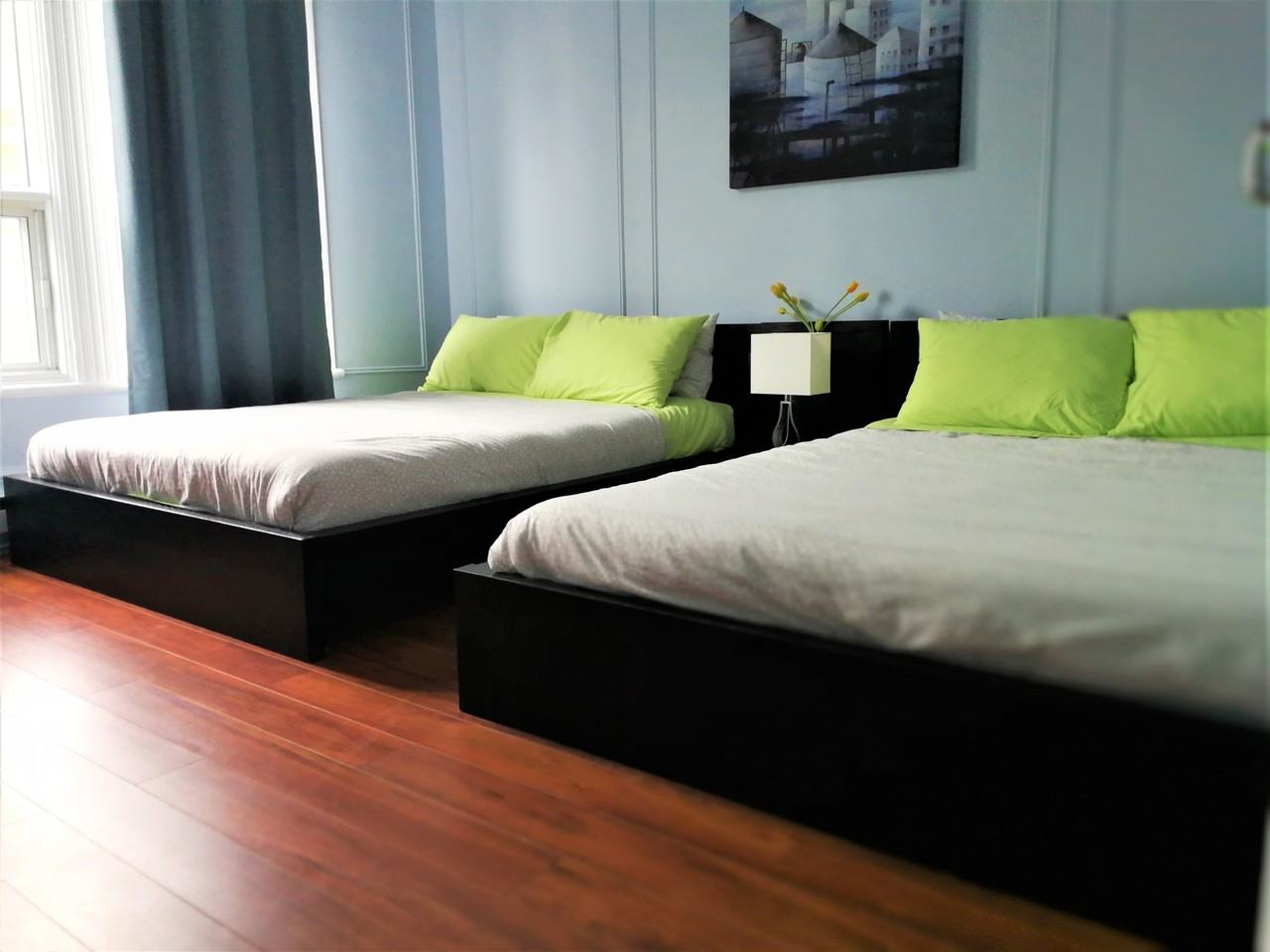 Several Fully Furnished Renovated 4-5 bedrooms apartments to rent. Moving date is flexible between July and Sep. 4 queen size beds, plus 1 room with 1 bunk bed or twin bed. Spacious open concept living room, kitchen and bathroom. AC and fireplace, washer and dryer in unit. Move in ready - fully furnished apartment. All furniture(bed,desk,sofa,table…), TV, AC, washer, dryer, refrigerator and stove, kitchen essentials, bedding are included. Just bring your personal stuff. Located on Coloniale Street, near the intersection of St. Laurent and Duluth, charming location in the heart of Plateau-Mont-Royal, close to cafes, grocery stores, and Duluth street. 2 mins walk to Boul. St-Laurent and BIXI bicycle. 5 min walk to Segal's, one of Montreal's oldest, cheapest grocery store. 5 mins walk to Rue St-Denis. 10 mins walk to Metro Mont-Royal. 15-20 mins walk to Downtown, McGill, UQAM. Steps from groceries, shops, cafes, bars, restaurants and the mountain. Feel free to contact via fb or call/text at 514-991-6891 ****