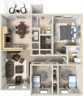 | Three Bedroom Townhome | 3 bed | 2.5 bath | 1,196 sqft |
