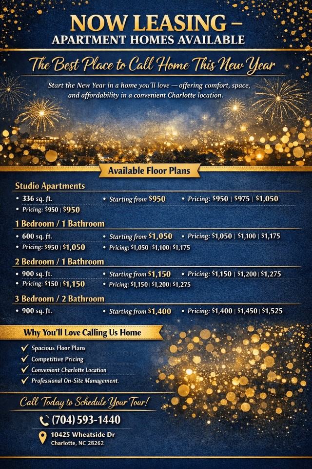 Pavilion At Uc Apts is a Charlotte Apartment located at 10425 Wheatside Drive. The property features Studio - 3 rental units available starting at $950. Amenities include Dogs Ok, Cats Ok, Pet Friendly Community, Pet Park, On-Site Laundry, and Washer / Dryer Connections. Heat Included, Water Included, Trash Removal Included, and Sewer Included included. Guest parking parking, Off-Street Parking parking, and Garage - Attached parking available. Contact us for a showing.
