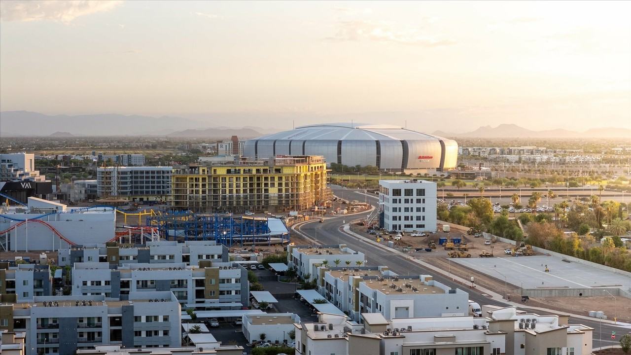 Acero at the Stadium is a Glendale Apartment located at 5550 N 95Th Ave. The property features 1 - 3 BR rental units available starting at $1395. Amenities include Dogs Ok, Cats Ok, Pet Friendly Community, Pet Park, On-Site Laundry, In-Unit Laundry, and Washer / Dryer Connections. Trash Removal Included included. Covered Parking parking, Garage - Detached parking, and Electric Vehicle Charging parking available. Contact us for a showing.