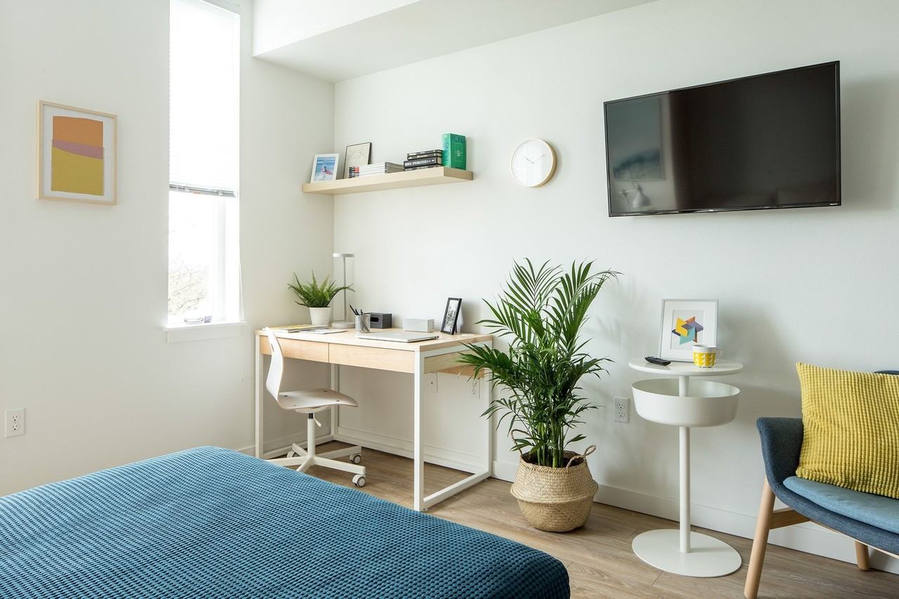 The Amy was designed with the student experience in mind. Several large common areas throughout the building promote community and student connection, while the private studio apartments allow residents to maintain their own space. Our apartments come complete with a Murphy bed and a desk and chair set, perfect for studying. An outdoor courtyard and complimentary bike parking are just a few of the amenities available to residents. We are a pet friendly community allowing both cats and small dogs for a small fee of $20 a month- but no pet deposit.
