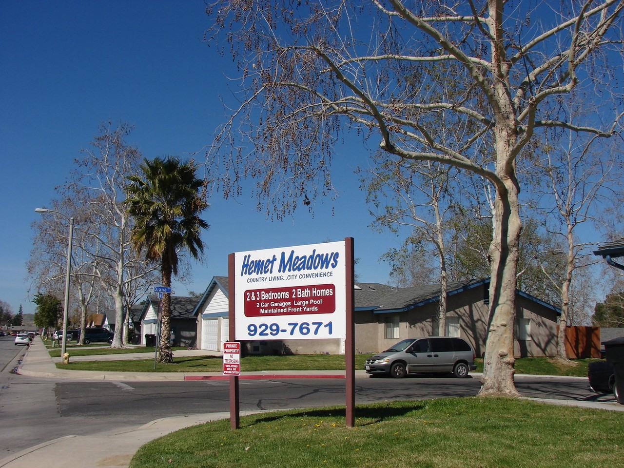 | 163 - 2X2 | 2 bed | 2 bath | 990 sqft | $1,800 /mo | 1 unit available | We currently have a two and three bedroom, two bath duplex homes available to rent. Nestled in the heart of the Hemet Valley, Hemet Meadow Homes is the Valley's best kept secret! The community is located conveniently near restaurants, shopping, and schools. Each spacious duplex home is equipped with central heat and air, large walk-in closets, a spacious kitchen, a private back yard, and washer and dryer hookups. Each unit comes with its own private two car garage providing safe and secure parking, with protection from the heat and rainy weather. The sparkling pool is often the center community activities. Hemet Meadow Homes forms its own quiet neighborhood. Each one-story duplex home as a front yard with park-like greenbelts running through the neighborhood. Stop by at 630 E. Fruitvale Avenue, Hemet, CA 92543 or call (951) 929-7671 for further information. ****Applicants must have a satisfactory credit and rental history. All applications are subject to a credit, criminal and rental history check. **** Hemet Meadow Homes |