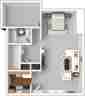 Open floor plan allows plenty of living space and storage. Our spacious studios offer wall to wall Berber carpeting, individually controlled eat and air conditioning. Solid wood cabinet kitchens are equipped with a full size refrigerator, electric range, built in microwave and disposal. Studio apartment residents tell us the extraordinary closet space is among their favorite things. An on site laundry room is located near by for your convenience.