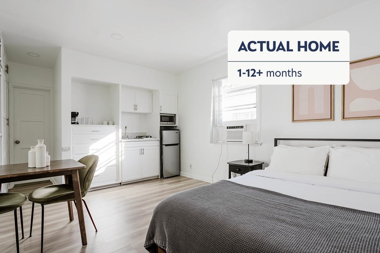 Discover the best of Los Angeles, with this studio apartment in Westwood Village. It’ll be easy to simply show up and start living in this furnished apartment with its fully equipped kitchen, living room, and our dedicated, on-the-ground support. (ID #LAX1209) The advertised rate of $2,110/month is the lowest available price, based on a 2 month(s) stay with a move-in date of February 6, 2026. If you’re looking for a 1-year stay, the rate is $2,280/month. Rates vary depending on the duration of stay, season, and other parameters. For exact pricing and additional pricing components, please visit our website and enter your desired move-in and move-out dates. The rate is applicable when billed upfront; it can be higher if billed in multiple payments. Brokers are welcome to reach out. Were you looking for an unfurnished lease? Try Blueground instead and upgrade from unfurnished to furnished living: - Furnished at rates comparable to unfurnished - No setup or furniture costs - save thousands - Move-in ready - save time, just bring your suitcase Designed with you in mind Thoughtfully designed with bespoke finishes, modern furnishings, and a fully equipped kitchen, you’ll enjoy that “I’m home” feeling with this Blueground apartment. Whether you’re lounging in your spacious living room streaming the latest and greatest entertainment on the smart TV or premium wireless speaker, or getting some well-earned rest on the superior quality mattress with luxury linens, you’ll fall in love with everything this Westwood Village apartment has to offer. Sleeping arrangements - Queen Bed, 63in/160cm Amenities Building amenities unique to this studio apartment include an on-site: - Dryer in building - Washing machine in building - Free street parking - Pets allowed Arrival and ongoing support The entire apartment is yours to enjoy! Throughout your stay, you’ll have access to our Client Experience team through the Blueground App. You can schedule additional cleanings, submit maintenance requests, and view our neighborhood recommendations with just a few taps. We’ll share all details upon confirmation of your stay. Other things to note This Blueground apartment has flexible lease options, allowing you to book it for one month, a year, or more. Pets are welcome, though weight limits and breed restrictions apply and may incur fees. Parking is offered based on availability and is subject to a fee. Please keep in mind that this is a walk up building. We take great pride in ensuring every photo displayed is shot in our own units with our actual furnishings. That said, we regularly refresh our decor and furniture arrangement, which may differ from what’s pictured.