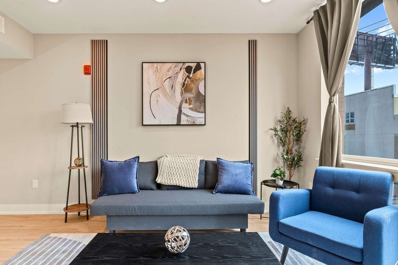 | 2 bed | 2 bed | 2 bath | Welcome to your home away from home nestled in the vibrant heart of Philadelphia. This cozy urban retreat offers the perfect blend of comfort, convenience, and modern amenities, ideal for both business travelers and vacationers. This charming 2-bedroom apartment promises a memorable stay with its serene ambiance and stylish decor. This inviting apartment is thoughtfully designed to cater to all your needs for a carefree and enjoyable stay. The first bedroom is furnished with two full-sized beds, offering high-quality linens, cozy pillows, and ample closet space. The second bedroom features a plush queen bed, ideal for kids or additional guests. The living room includes a stylish and comfortable sofa bed, seamlessly integrated into the space. The kitchen is outfitted with state-of-the-art stainless steel appliances, including a refrigerator, oven, stove, microwave, and dishwasher, making cooking and cleanup a breeze. The bathrooms feature a contemporary design with clean lines and high-quality finishes, creating a serene and inviting atmosphere. Pets are allowed depending on size, with an additional cleaning fee of $25 per night for stays of 1-4 nights, $200 for 5-29 nights, and $300 for 30+ nights. Surveillance cameras are in the hallways for security and a Minut device is in the unit for noise level monitoring. Experience the best of Philadelphia from this stylish urban apartment. Whether you’re visiting for business or leisure, the location offers easy access to the city's attractions and amenities, ensuring a memorable and enjoyable stay. Guests have full access to the entire apartment, ensuring a private and comfortable stay. Self-check-in is available for your convenience. Interaction is minimal, respecting your privacy, but assistance is available if needed. Guest verification prior to stay is required, including providing a government-issued ID and possibly undergoing a background check. Check-in instructions might be withheld until verification is completed. All guests are subject to verification checks and must provide necessary information within 24 hours of booking, or within 1 hour for same-day bookings. Reservations may be canceled if verification criteria are not met. Equipped with a comfortable desk and chair, this apartment ensures you can work for extended periods without discomfort, making it remote work-friendly. | |||