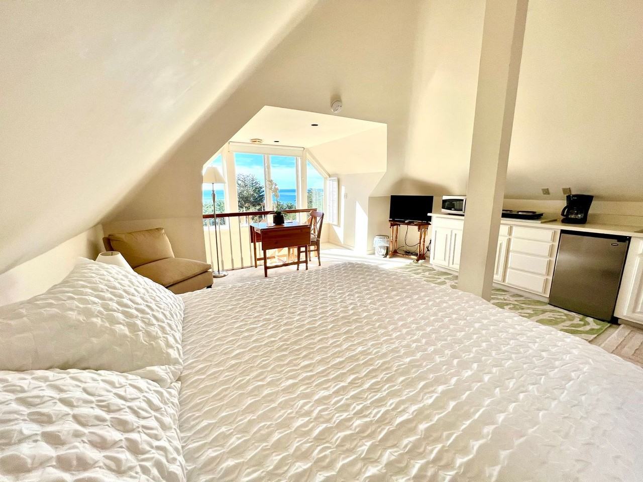 Come make your next 30-day stay in Pebble Beach comfortable and relaxing! Call our office for questions about booking: 831-658-4005 To apply, click here: https pacificgrove appfolio com listings detail 65530b98-5a10-4319-bf5d-ca3c54b54a53 Rental Rate: $2,950.00 (monthly) Security Deposit: $1,500.00 Application Fee: $50.00 Documentation Preparation Fee: $150.00 (cost of creating your booking agreement) Welcome to "Sunset Point" Vacation Rental, located in in Pebble Beach, California. This unit is available only on a short-term basis, with a minimum of a 30-day stay requirement, and comes fully-furnished. Just moments away from the world renowned Pebble Beach Golf Course, and a stone's throw away from the Pacific Ocean, is this quiet studio-esque abode. Residing on the top floor of a well-kept estate, is your perfect get-away spot for 30 days (or more) on the Peninsula. Located just blocks from the illustrious Pebble Beach Golf Course, 17-Mile Drive, and a short drive from all of the Peninsula's amenities, this studio's location "provides." As you approach the private guest entrance and begin to walk inside, you'll notice multiple carpeted stairs leading up to the living quarters. Once you've reached the top of the stairs, please take note of the stunning ocean views. The vaulted A-shape of the unit highlights the height of the ceilings which brings in quite a bit of natural light to the space. The queen-sized bed is positioned perfectly to enjoy those blue-water views as well. The long kitchenette has a plug in-cooktop stove, microwave, refrigerator and storage space for basic kitchen amenities. The breakfast nook along the staircase railing provides comfortable accommodations to enjoy a meal or a refreshment. Off of the living quarters is the full bathroom with a shower stall, as well as ample walk-in closet space for your clothing items and some storage. There is usage of the far left garage space, which has access directly into your unit's stairwell. There is also access via the garage to the washing machine and dryer, that is shared with the owner. All utilities are included in this quaint abode for your convenience. Unfortunately at this time, this unit does not have laundry accommodations. Book your next short-term stay now!!