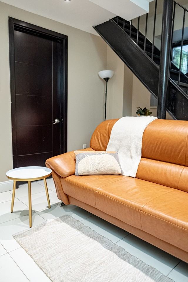 The kitchen is fully equipped with a large refrigerator, stovetop, oven, coffee maker, toaster, microwave, and all the utensils and cutlery you might need during your stay. Each bedroom has a queen/full-size bed, desk, mirror, closet, AC, and window. The apartment also features a good-sized marble bathroom with both a shower and a bathtub, as well as a washer.