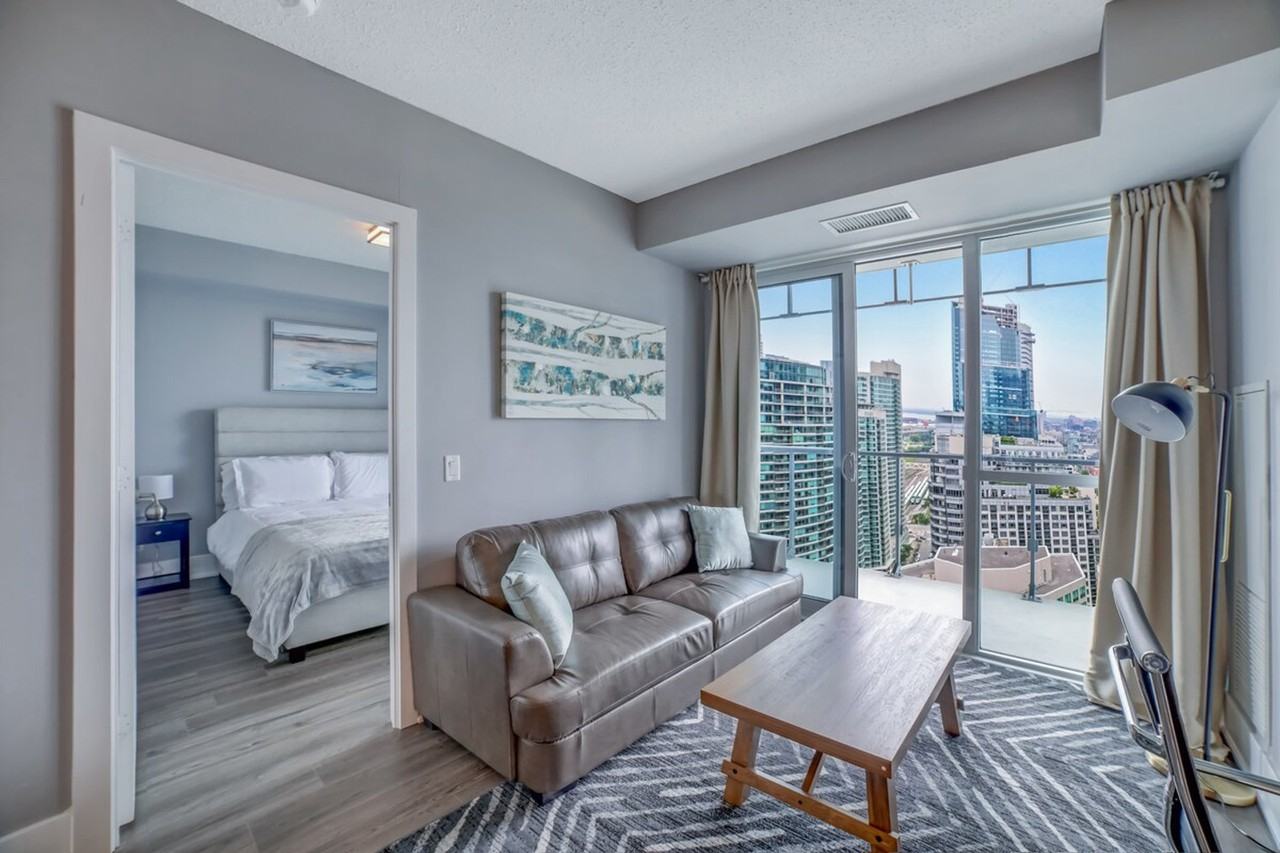 The advertised rate of C$6,750/month is the lowest available price, based on a 30 day(s) stay with a move-in date of March 8, 2026. Rates vary depending on the duration of stay, season, and other parameters. For exact pricing and additional pricing components, please visit our website and enter your desired move-in and move-out dates. The rate is applicable when billed upfront; it can be higher if billed in multiple payments. Feel at home in this luxury 2-bedroom condo in the heart of downtown Toronto, located steps away from Union Station, CN Tower, Rogers Center, Air Canada Center, and Harbourfront. Enjoy a royal view of the entire city and CN Tower from the huge corner balcony. This comfortable suite has everything you need. The fully functional kitchen includes tea, coffee, a kettle, a coffeemaker, and a toaster. A washer and dryer are available with supplies. The bathroom includes towels, shampoo, conditioner, body wash, a hair dryer, and other toiletries. Paid underground parking with in/out privileges is available upon request for $25 per night, or $15 per night for bookings of at least 15 nights. A travel crib (for babies 0-18 months) and bed rails are available for $10 per item per night. This centrally located condo is near many attractions. Pets are not allowed in the apartment. Guests must provide their personal information prior to check-in, including the full names of every guest staying in the apartment. Guests must be 25 or over in order to check in, although for reservations of 7 nights or more, check-in is possible from the age of 18. If smoking occurs inside, there will be damage to the unit, or other house rules are violated, the deposit will not be refunded.