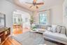 This home provides comfort and convenience with updated mid-century furniture, a fully equipped kitchen, and high-speed Wi-Fi. The bright living room features a cozy sectional sofa, stylish décor, and a ceiling fan. The spacious dining area includes a wooden table with modern chairs. The fully equipped kitchen features modern appliances and ample counter space. Fresh linens, towels, and basic toiletries are provided to ensure a comfortable stay.