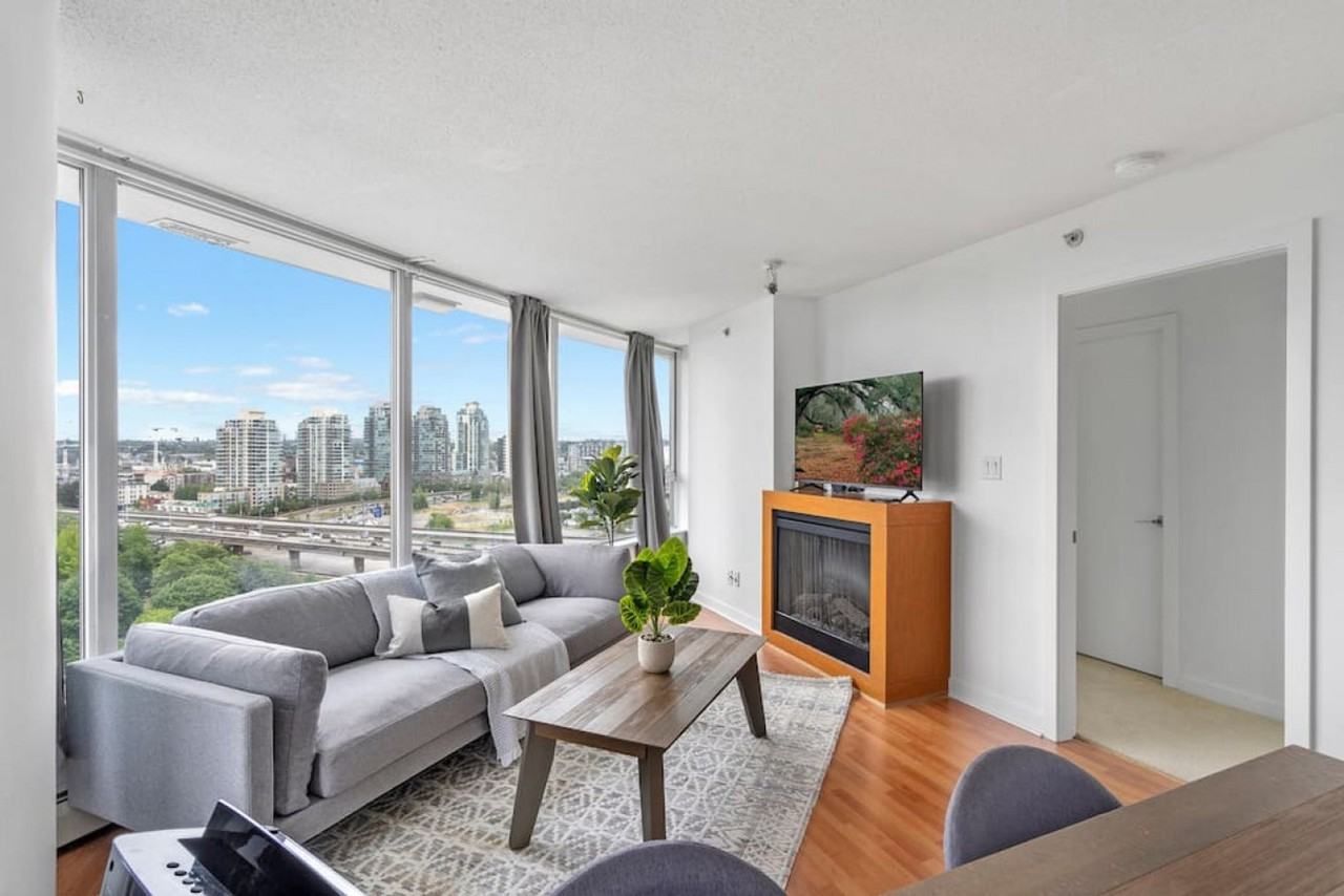 The advertised rate of C$4,595/month is the lowest available price, based on a 30 day(s) stay with a move-in date of October 23, 2026. Rates vary depending on the duration of stay, season, and other parameters. For exact pricing and additional pricing components, please visit our website and enter your desired move-in and move-out dates. The rate is applicable when billed upfront; it can be higher if billed in multiple payments. This spacious and beautifully furnished 2-bedroom condo offers a free parking stall and is perfectly located in the heart of downtown Vancouver, providing stunning 180-degree views of the city. Experience comfort while being close to great restaurants, bars, stadiums, and grocers. The space is fully stocked with everything needed for a short-term or long-term stay, making it ideal for couples, business executives, or friends looking to explore the city. The condo features a comfortable 2-bedroom, 2-bathroom layout, complete with a living room, full kitchen, and a small den with windows for work. Each room offers its own unique view. The home includes a portable AC unit in the living area and portable fans in each bedroom for added comfort. Guests have access to the entire unit and all amenities provided within, including a pool and gym, though these are subject to building emergency closures at times. The condo includes a free parking stall for added convenience. Situated in the Central Vancouver neighborhood, close to the Stadium District, this area is bustling with life and excitement. Enjoy the Cineplex theatre for movies, as well as Rogers Arena and BC Place for concerts and live events. The streets are lined with fantastic pubs and restaurants that tourists will love. Downtown Vancouver is surrounded by the seawall, a beautiful pedestrian path offering spectacular views of the city. The portable air conditioning is available only in the living room. Important house rules include no parties, no smoking, and no events, with any broken rules resulting in a minimum $1000 fine. We are available throughout your stay via the app for any assistance needed. The small den with windows provides a space to work from, though a laptop computer is not included.