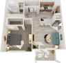 | The Elton | 1 bed | 1 bath | 938 sqft | $1,549–$1,574 /mo | 6 units available | Compose your ideal lifestyle in 938 sq ft of beautifully crafted living space. The Elton sets the tone with soaring 9-foot ceilings, a versatile den or home office for work and creativity, and a chef-inspired kitchen featuring polished granite counters, stainless steel appliances, stylish tile backsplash, and pendant lighting above the bar. This floor plan blends sophistication and practicality with luxury vinyl plank flooring in main living areas, plush designer carpet in the bedroom, and a walk-in closet with built-in shelving for effortless organization. A full-size in-home washer and dryer, plus a complete appliance package including dishwasher, microwave, and refrigerator, streamline your day-to-day. Stay comfortable year-round with central air and heating, then step outside to your private patio or balcony. The Elton — where expanded space and premium features create the perfect backdrop for your life. |