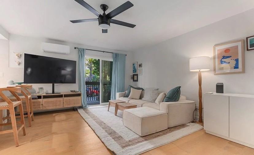 This beautifully remodeled 1-bedroom, 1-bath condo combines modern style with coastal convenience. Thoughtful upgrades include new hardwood floors throughout, custom cabinetry in the kitchen and bath, a sleek tiled shower, with a glass shower enclosure and a ventless stackable washer and dryer. The kitchen features stainless steel appliances, including a black stainless steel range, while the living area is equipped with an energy-efficient split HVAC system for year-round comfort. Ideally located less than two miles from Moonlight Beach, the energy of Coast Highway 101, and the shops and restaurants along El Camino Real. Enjoy the convenience of nearby favorites like Trader Joe?s, Sprouts, and Sephora?all just minutes away. Additional highlights include a reserved underground parking space, a private storage room, guest and street parking.
