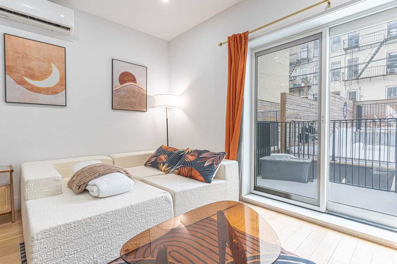 | 2 bed | 2 bed | 2 bath | $10,135 /mo | Feel at home in this modern 2-bedroom duplex in Brooklyn, thoughtfully designed across two levels for comfort and privacy. This apartment is perfect for families or friends, sleeping up to 6. This apartment features a fully equipped kitchen with a dishwasher, oven, microwave, refrigerator, freezer, cookware, and ample cabinet space. Additional amenities include a split AC system, washer and dryer in a dedicated basement room, a cozy basement nook, and a backyard with cornhole for outdoor fun. Entertainment is a highlight, with three smart TVs throughout the home. Essential household items and cleaning supplies are provided to make your stay hassle-free. There are no paid add-ons available for this apartment. |
