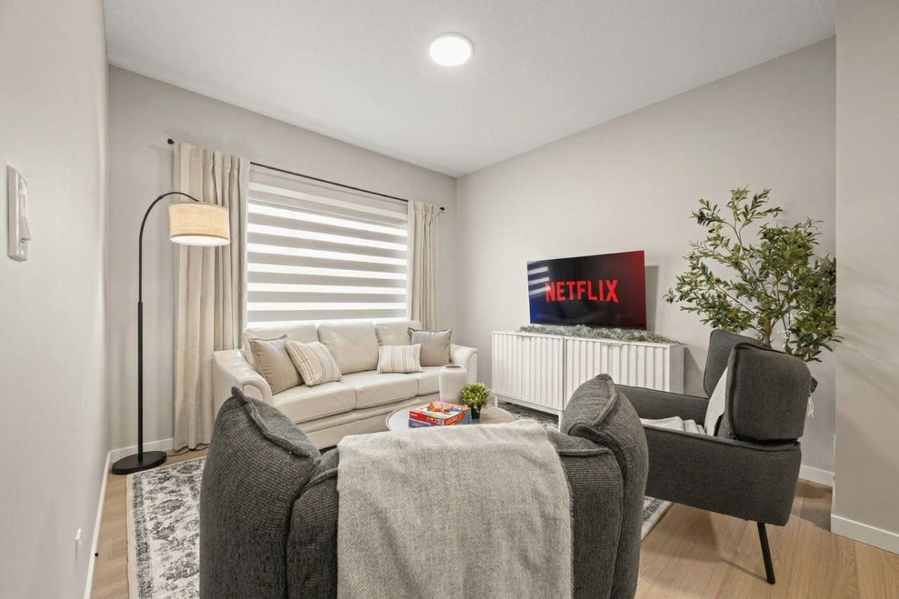 | 4 bed | 4 bed | 3 bath | 1,646 sqft | $3,546 /mo | The advertised rate of C$3,546/month is the lowest available price, based on a 1 month(s) stay with a move-in date of April 5, 2026. Rates vary depending on the duration of stay, season, and other parameters. For exact pricing and additional pricing components, please visit our website and enter your desired move-in and move-out dates. The rate is applicable when billed upfront; it can be higher if billed in multiple payments. Bring the whole family to this home with lots of room for fun! Just minutes from West Edmonton Mall, this home offers a peaceful place to relax, recharge, and feel at home and enjoy Edmonton, whether you’re visiting for work, family, or a weekend getaway. This bright and thoughtfully designed home offers the perfect blend of comfort and convenience. Enjoy cozy evenings with your favorite shows on the Smart TVs and prepare delicious meals in the fully equipped kitchen. With warm, modern décor and plenty of natural light, this main-floor retreat is a peaceful home base for your Edmonton stay! The home is equipped with a foosball table. Free street parking is available around the home, along with indoor garage parking and outdoor driveway parking. A pack n play and high chair are available. Located in Edgemont, one of West Edmonton’s newest and most sought-after communities, this home is known for its peaceful atmosphere, modern homes, and easy access to nature. Surrounded by scenic walking paths, ponds, and green spaces, it's perfect for morning strolls or family outings. Grocery stores, cafés, and everyday essentials are a short drive away, while top attractions like West Edmonton Mall and River Cree Resort & Casino are all close by for effortless exploring. Convenient bus routes connect you to Edmonton’s bus and train system, making it easy to explore the city. Ride-sharing services are readily available and provide quick, hassle-free transportation. Please observe quiet hours from 10 PM to 8 AM, as there are neighbors to respect. A $500 fee will be charged if there is evidence of any unauthorized events or parties on the property at any time. Pets are not permitted in the home. A minimum $250 fee will be charged if there is evidence of any unauthorized pets in the property and may increase to cover additional cleaning or damages. Smoking, vaping, and the use of illegal substances inside the property are strictly prohibited and violations incur a minimum $400 fee, with additional cleaning charges if damage or lingering odors are found. Unauthorized guests will be asked to leave, and unregistered guests will incur a $40 fee per person per night. A $50 fee will apply if you check out more than 30 minutes past the scheduled time without prior notice or approval. An additional $50 will be charged for every subsequent 30 minutes up to 2 hours. Where applicable to properties using physical keys or access fobs, a $250 fee will apply for any items that are lost, damaged, or not returned after checkout. Registration Number: 626883089-001 | ||