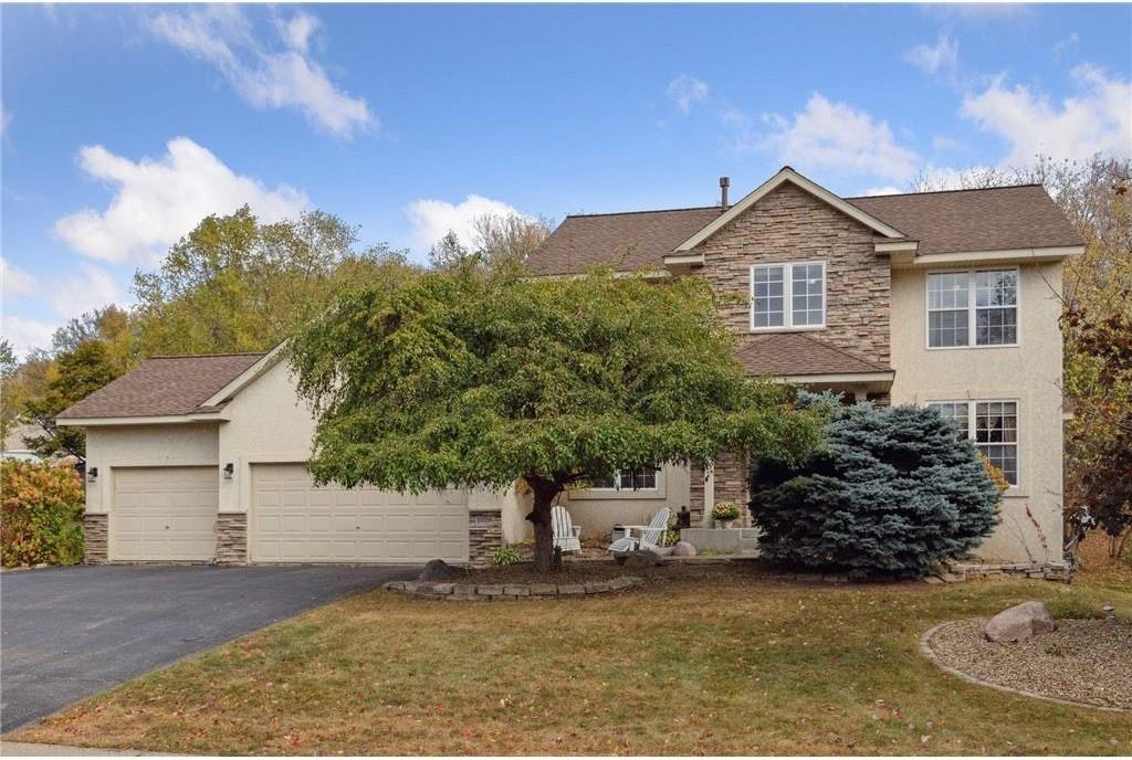 Nestled in a highly sought-after neighborhood, this gorgeous two-story home offers the perfect blend of space, comfort, and design. Step inside to find a bright, open main level flooded with natural light from oversized windows. Right off the entryway is a versatile flex space—ideal for a cozy reading room or your work-from-home office. Entertain with ease in the formal dining room, or relax in the inviting living room anchored by a warm fireplace. The chef-inspired kitchen is ready for your culinary creations, boasting upgraded stainless steel appliances, double ovens, abundant counter space, and a fantastic center island for gathering. Upstairs, you will love the convenience of having all the bedrooms on one level. Retreat to the spacious primary suite, complete with an ensuite bath featuring a relaxing jetted tub and a dual-sink vanity. The expansive lower level is a true blank canvas with an open layout, ready to be utilized as a gym, or playroom, rec room or additional storage area. Outside, enjoy Minnesota summers on the large back deck overlooking a sprawling backyard. Complete with a newer water heater and an attached 3-car garage, this home truly has it all. Located in an exceptional school district with quick access to local parks, dining, and shopping. Schedule a tour today!