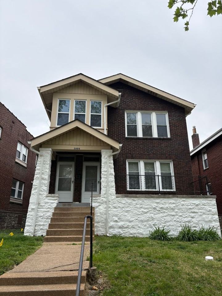 Beautifully Renovated 2-Bedroom Apartment in St. Louis Hills Area Discover the perfect blend of historic charm and modern convenience at 5006 Christy Blvd. This stunning, move-in-ready unit offers a spacious layout featuring classic architectural details paired with high-end contemporary finishes. Interior Highlights • Stunning Living Spaces: Gleaming, newly refinished hardwood floors run throughout the living and dining areas. The main living room features a decorative white brick fireplace flanked by custom built-in shelving, creating a sophisticated focal point. • Modern Chef’s Kitchen: A fully updated kitchen boasts stainless steel appliances (including a dishwasher and built-in microwave), dark wood cabinetry, and crisp white subway tile backsplashes. The durable tile flooring makes for easy maintenance. • Refined Bedrooms: Two bright bedrooms offer ample natural light, fresh neutral paint, and generous closet space, with potential for a 3rd. • Updated Bathroom: Enjoy a clean, modern aesthetic with a new vanity, matte black fixtures, and classic subway tile surrounding the tub/shower combo. • Bonus Sunroom/Office: A versatile tiled bonus room at the rear of the unit includes built-in shelving—perfect for a home office, breakfast nook, or hobby space. Exterior & Curb Appeal This handsome brick duplex features a stately white stone porch and a grand entryway. The property is well-maintained with a tidy front lawn and sits in a walkable, tree-lined neighborhood. Key Features • Flooring: Refinished hardwoods and ceramic tile. • Climate: Central heating and cooling. • Updates: Contemporary lighting fixtures and matte black hardware throughout. • Location: Ideally situated near local parks, dining, and shopping with easy access to major thoroughfares. Don't miss out on this stylish home! Schedule your private showing today.
