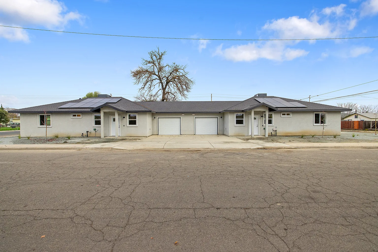 Experience the pinnacle of upscale living in this stunning, brand-new construction duplex located in the heart of Hanford! This unit is a 3 bedroom and 2 bathroom. Each unit features an open-concept floor plan highlighted by premium luxury flooring. You will love the kitchen that boasts high-end quartz countertops and a full suite of brand-new stainless steel appliances. A standout feature of this property is the owned solar system, offering massive utility savings and energy efficiency year-round. The intelligent architectural design separates living quarters by an attached 1-car garage, ensuring no shared living walls for maximum privacy. The home showcases quality craftsmanship, including modern HVAC systems and convenient in-unit laundry hookups. Situated just minutes from Hanford’s vibrant downtown dining and shopping, this location offers unbeatable convenience for any lifestyle. Be the first to call this high-efficiency, professionally managed masterpiece home.