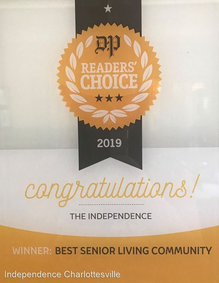 Spring Forward into Retirement at The Independence! - Welcome Home to The Independence! Charlottesville’s most spacious apartment community for active adults, professionals and those over 55. The Independence is a modern three-story apartment community in Charlottesville — ideal for active adults ages 55+ who want a comfortable independent lifestyle, convenience, the best amenities and freedom from home maintenance. Our apartments provide plenty of room for entertaining, hosting dinner parties with friends, or even having family stay overnight. Choose from our 1 and 2 bedroom floor plans ranging from 787 square feet – 1,558 square fee, many with private patio or balcony. As a resident, you’re a valuable and integral part of our community, which is why you’ll also be a voting member in our Resident Association. The Resident Council, the association’s executive body, is made up of nine resident members who meet monthly and who are instrumental in interacting with management on many facets of life at The Independence. At The Independence, you can relax and enjoy living in a 55+ active adult community unlike any other in the area with amenities including: -Fitness center with exercise classes, strength and cardiovascular training, wellness programs, yoga and health-related seminars designed just for adults 55+ -Wide-screen TV lounge, community rooms, game room with billiards table, resident clubhouse and party kitchen, gorgeous lobby with player piano, library and computer center with Internet access -Outside Spaces including gardens, pet bark park, and large decks where you can watch the sun set over the mountains or socialize with other residents -Comprehensive security system and controlled access -Activities director to coordinate events and gatherings such as Book and Walking Clubs, Pot Luck dinners, resident socials, bi-weekly Jazz concerts, group outings and more -Onsite maintenance staff available to help with everything from hanging pictures to moving in a new chair or changing a light bulb. Say goodbye to lawn care, painting, and home repair projects! -Scheduled transportation services so you can enjoy all the arts, culture and history Charlottesville has to offer -Pets are welcome in our Bark Park, which has been designed to allow our residents and their pets access to a beautiful outdoor space where pets can play and residents can gather (non-aggressive breeds – please ask for details). Life at The Independence can be as social and full as you want it to be! Call us today!