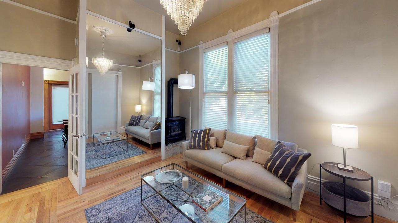 | Bedroom 1 | Room | 2 bath | 187 sqft | Sporting a classic Victorian exterior, this 4 bed 2 bath home in Downtown Oakland boasts an open layout, offering plenty of living space. There are decorative chandeliers throughout, hardwood floors, and high ceilings. Each bedroom is sizable. Plus, to top it off, there's in-building laundry and the home offers a large outdoor patio that's great for outdoor gatherings—hello weekend BBQs!Tucked away in an upbeat neighborhood right off San Pablo Ave, this home is surrounded by all of Downtown Oakland's best establishments. Enjoy a night out on the town at the Paramount Theater or head to a concert at The New Parish. There are tons of great dining options in the area including local favorites like Calavera and Hopscotch. Running daily errands is quick and easy with Sprouts and Whole Foods less than 10 minutes away. Additionally, you'll have no trouble getting to other parts of the Bay with access to the 19th St. BART Station and the 980 nearby. |