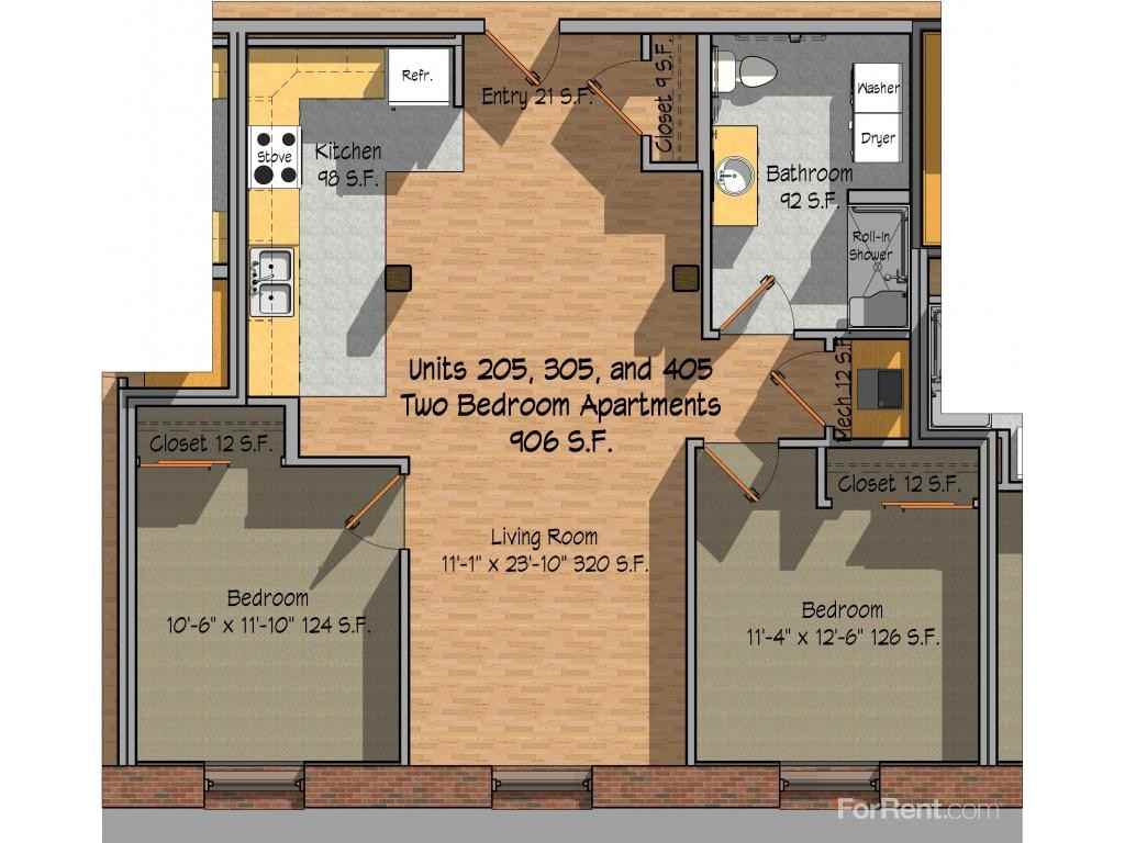 | Units 205, 305, and 405 | 2 bed | 1 bath | 906 sqft | |||