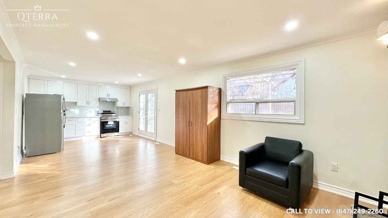 MODERN 1-BEDROOM APARTMENT IN A PRIME LOCATION Text or Call to View: (647) 249-2260 Welcome to this newly renovated 1-bedroom apartment, offering 900 square feet of modern and comfortable living space. Perfect for singles, couples, or small families, this home combines contemporary amenities with a cozy atmosphere. KEY PROPERTY DETAILS: - Type: Apartment - Bedrooms: 1 - Bathrooms: 1 - Size: 900 SQF - Availability: Immediately - Parking: 2 spaces available - Virtual Tour: [https youtu be B0v161Rvyq0](https youtu be B0v161Rvyq0) UNIT AMENITIES: - Property Condition: Newly renovated, offering a fresh and modern living experience. - Kitchen: The upgraded kitchen is a highlight, featuring high-end stainless steel appliances, elegant quartz countertops, and a stylish upgraded backsplash. - Living Space: With an impressive 8.5-foot ceiling, the living spaces feel bright and airy. - Flooring: Hardwood flooring throughout the unit not only looks beautiful but is also easy to maintain - Closets: Regular closets, providing ample storage space. - Bathroom: Upgraded with modern fixtures and finishes. - Laundry: Ensuite facilities for added convenience. - Unfurnished: Ready for you to personalize with your own furniture and decor. - Open Concept Layout: Enhances the sense of space and light. - Tons of Natural Light: Large windows ensure a bright and welcoming environment. BUILDING AMENITIES: - View: Enjoy serene views of the courtyard/backyard. - Backyard Deck: Perfect for outdoor relaxation and entertainment. - Backyard: Shared space for outdoor enjoyment. - Full Driveway: Ample parking space for residents and guests.