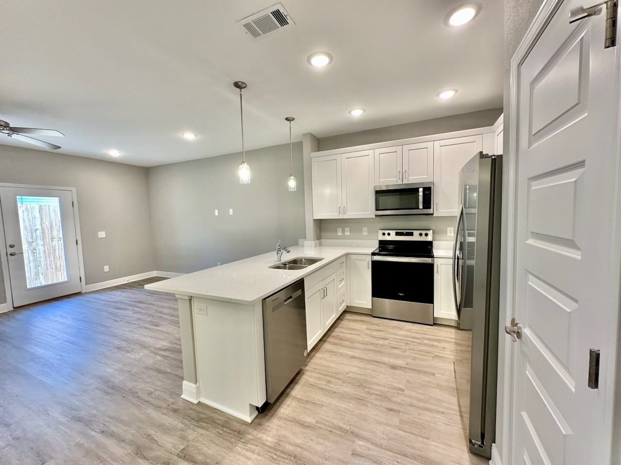 | 319 Carmel Drive - 1 | 3 bed | 2.5 bath | Brand NEW townhomes for rent in the heart of Fort Walton Beach! This unit offers 3 bedrooms/ 2.5 bathrooms with a one car garage. Downstairs you will find the living room, half bathroom, and a contemporary kitchen complete with Bianco Carrera Quartz countertops, soft close cabinets, and stainless steel appliances including a fingerprint resistant stainless steel side by side refrigerator. You will find LVP throughout the living and bathrooms, and plush carpet for comfort in the bedrooms. Make an appointment to come see this unit today! |