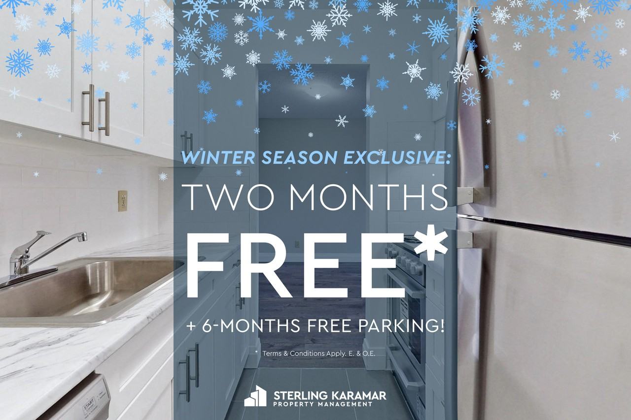 Winter Exclusive | Enjoy 2 Months FREE on a 14-Month Lease! + 6-Months FREE Parking!* Limited Time Offer | Enjoy 2 Months FREE on a 14-Month Lease! + 6-Months FREE Parking!* *Terms & Conditions Apply.