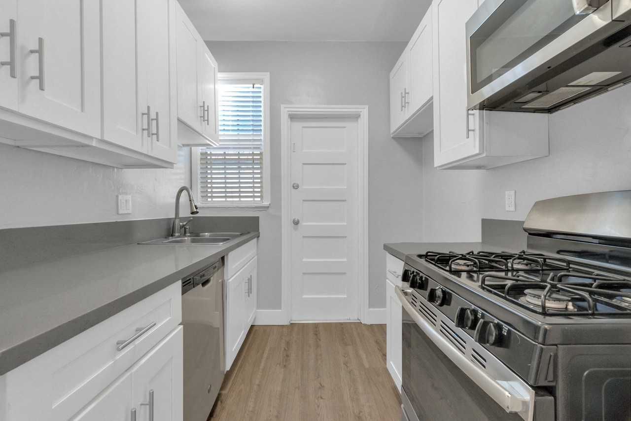 Nestled in the heart of Long Beach and conveniently located near local transportation, this charming, newly upgraded upper-level 1-bedroom, 1-bath unit This spacious unit boasts a bright and inviting living room featuring custom lighting, fresh paint with elegant accent moldings, brand-new blinds, and stylish custom flooring. The hallway offers ample storage with newly installed cabinetry, while the thoughtfully redesigned kitchen is a standout, showcasing sleek quartz countertops, brand-new cabinets, stainless steel a modern sink with updated fixtures, and new light fixtures. The bathroom has been beautifully enhanced with custom tile work, a new vanity with updated lighting and fixtures, a new window, and fresh custom flooring. The generously sized bedroom includes a walk-in closet, new blinds, a new ceiling fan, and the same custom flooring for a cohesive look throughout. Rent: $1,775 Security Deposit: $1,500 Lease Terms: 1-year lease required (non-negotiable).