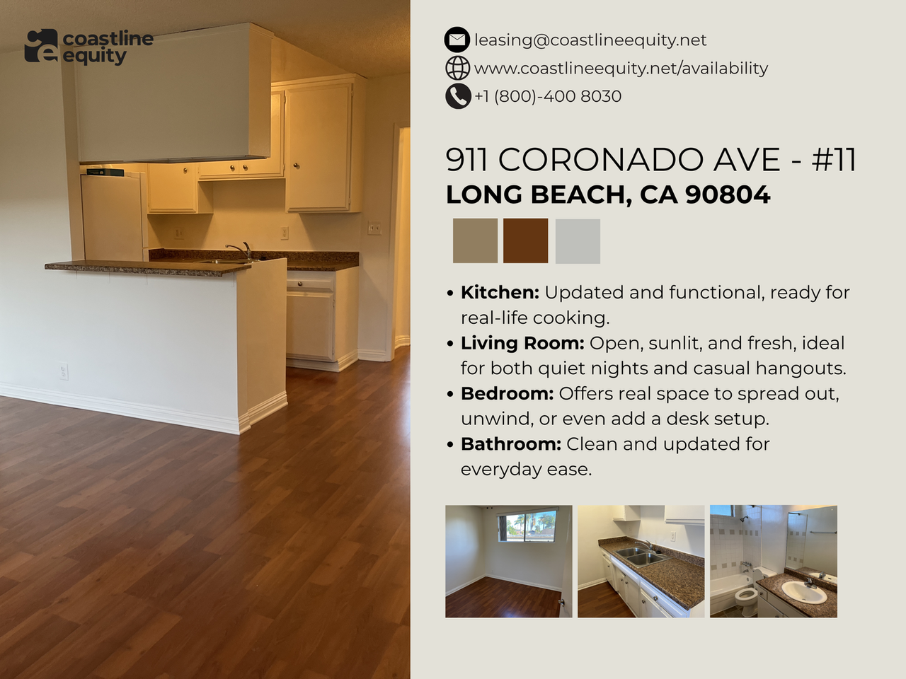 Spacious 1-Bedroom, 1-Bath Apartment with Prime Location. This large 1-bedroom, 1-bathroom unit offers the perfect combination of modern updates and convenient living in a vibrant Long Beach community. Featuring new paint, laminate flooring, and a stove, this unit offers an open and airy living space that is ideal for both relaxation and entertaining. Key Features: • 1 spacious bedroom and 1 full bathroom • New laminate flooring and fresh paint for a modern feel • Two on-site laundry rooms for your convenience • Shared courtyard with additional seating – perfect for relaxing outdoors • Small pets under 35 lbs allowed with prior approval, and Pet rent: $50/month Location: 2.5 miles from Long Beach State University, Half a mile from Rose Park, and 1.5 miles from Long Beach City Beach. Nearby markets, restaurants, and retail centers ensure you have everything you need within easy reach. Quick access to major freeways and public transportation for easy commuting Available: 07/21/2025 Rent: $1,695/month Schedule a tour today and see why 911 Coronado Ave - #1 is the perfect place for your next home in Long Beach! To apply: Visit coastlineequity net availability Requirements: Required Documents for all adult occupants -Government Issued, Photo ID -Three months of bank statements (most recent, previous three months) -Three months of pay stubs (most recent, previous three months) Income -Gross income must be 2.5x the rental amount. -Applicants in a group can combine their income to meet the required 2.5x income. • If applicants do not meet income requirements, we will require co-signers that meet the co-signor requirements. Credit Score -Must be above a 650 Credit Score. • If applicants do not meet the credit requirements, we will require co-signers who meet the co-signer requirements. • If applicants do not have a credit score, we will require co-signers who meet the co-signer requirements. Criminal History -Any convictions of felony or conviction for a crime against a person. Evictions -No prior evictions within the last seven years. Rental History -Able to provide at least three years of verifiable rental history. To schedule a tour, please get in touch with us: Phone - 800 400 8030 Email - ****