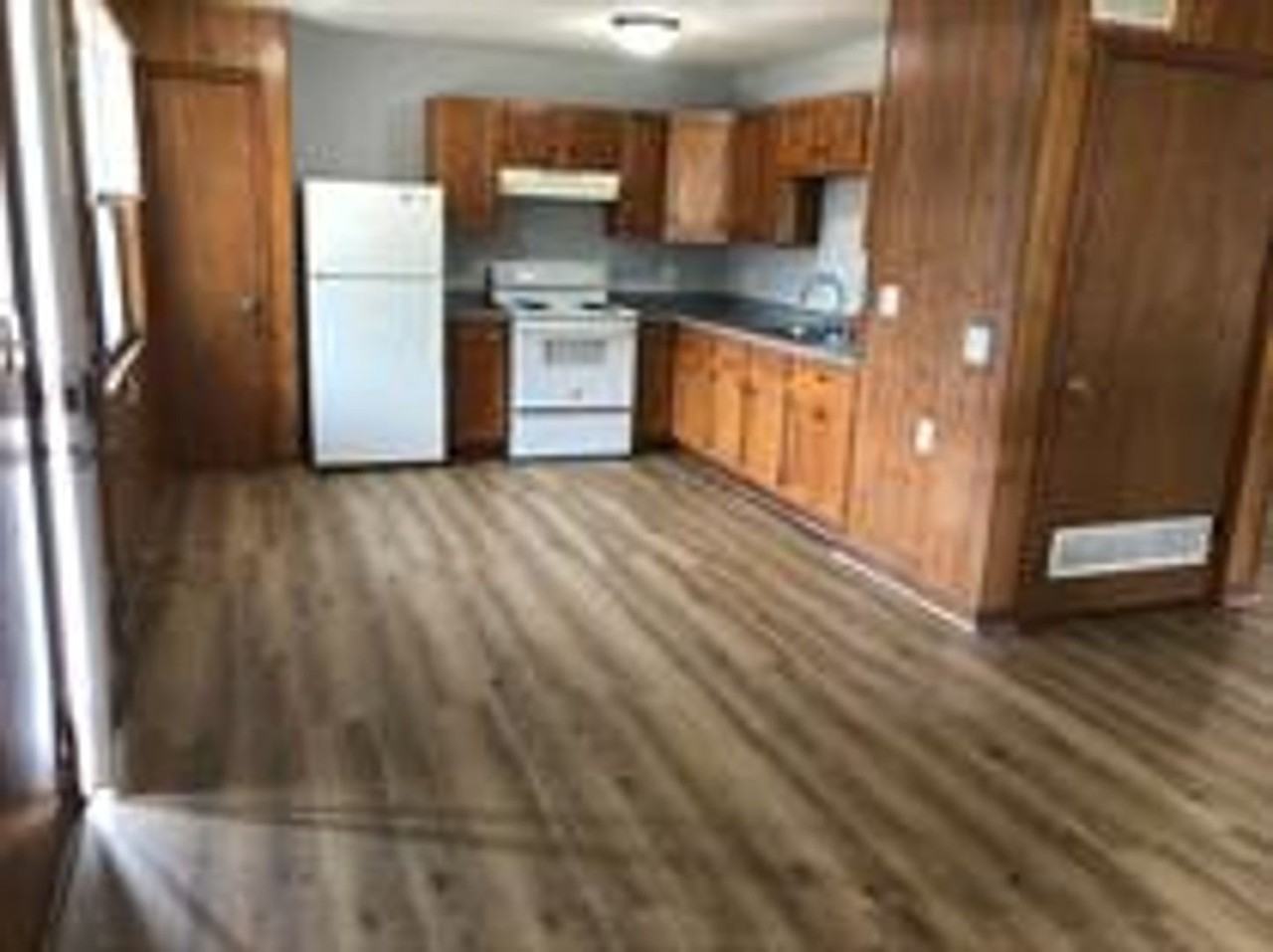 This main floor unit features an open floor plan and is centrally located. Comes with refrigerator and stove. Trash and lawn included. 1 Dog OKAY WITH APPROVAL AND $75 MONTHLY PET RENT. NO SMOKING. Renter's insurance required.