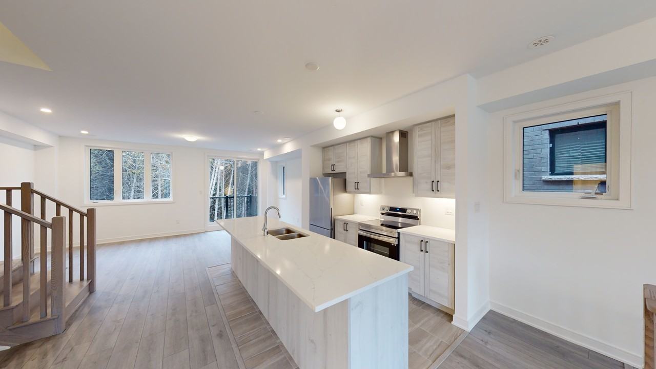 FOUR BEDROOM TOWNHOUSE This gem is a newly-built 4-bed corner freehold townhouse, 5km from Hwy 400 and a 10-min walk to Barrie South GO train station. Nestled in a family-friendly area, it has several upgrades: laminate flooring throughout, oak stairs, and smooth ceilings. The open-concept layout includes a chic kitchen with quartz island, pot lights, and stainless steel appliances. Large windows and 9-ft ceilings grace every floor, bathing the space in natural light. The lower level features a spacious lobby, laundry, and a huge recreation room facing a serene ravine. Upstairs, a bright living-dining area, upgraded bathrooms, and 4 bedrooms with closets await. The insulated basement offers ample storage, while the garage accommodates one car plus storage, with an extra parking spot on the driveway. Energy-efficient features like ERV, humidifier, and dual furnaces ensure comfortable living. Extras: Stainless Steel Fridge, Stove and Dishwasher. Washer and Dryer. Landlord to install window coverings throughout. AVAILABLE FOR IMMEDIATE OCCUPANCY ALL UTILITIES EXTRA Please contact our office to book a viewing and additional information. YorkWest Developments (416) 530-4900 **** ID # 126BF