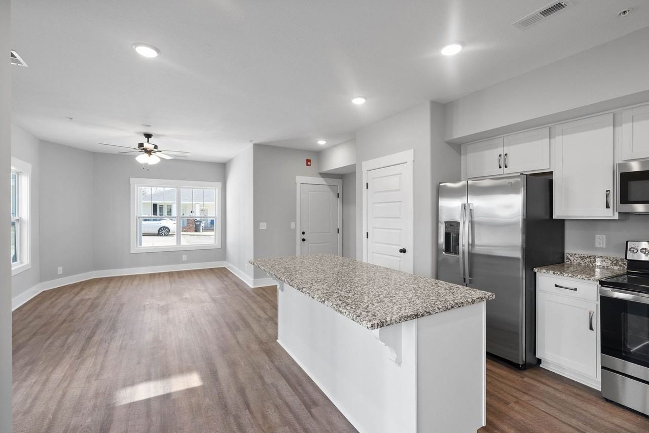 | 1BR/1.0BA | 1 bed | 1 bath | 900 sqft | $1,295 /mo | 1 unit available | Welcome to our luxury downtown apartments in Clarksville, TN! This 1-bedroom, 1-bathroom unit offers a modern living experience with a spacious living and dining area. Stylish LVP flooring throughout creates a sleek atmosphere. The chef's kitchen features an island, granite countertops, stainless steel appliances, and a large pantry. Relax on the covered porch or your personal deck. Enjoy amenities such as ceiling fans, a double vanity, and an extra-large free-standing shower in the bathroom. A washer and dryer are included for convenience. Up to 2 pets 50 LBS. or less are welcome, pet fees & restrictions apply. **All pictures of Apartments, Townhomes, and Condos are for advertisement purposes only. View unit before securing. *$50 monthly water fee |